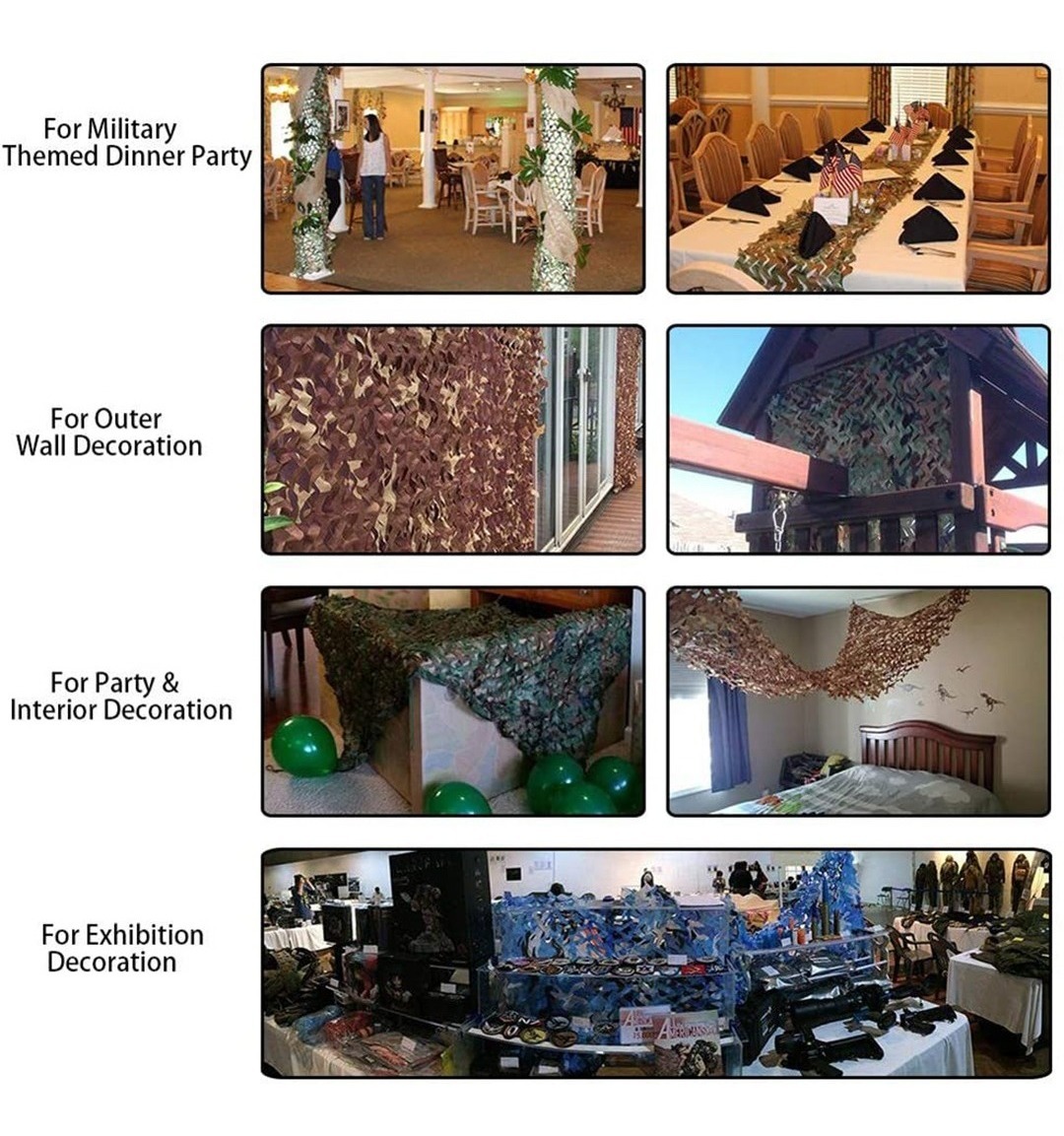 Material: 100% poliéster Tamaño Aprox: 3 x 2 metros Red camuflaje selva con cuerdas El camuflaje es muy liviano con un efecto realista y versátil. Vida útil: 2 años bajo el entorno exterior. Material de alta calidad con secado rápido, resistente al agua, resistente a la corrosión y al moho. Se puede doblar fácilmente para hacer el tamaño necesario. Peso ligero, fácil de llevar a todas partes.