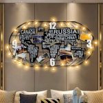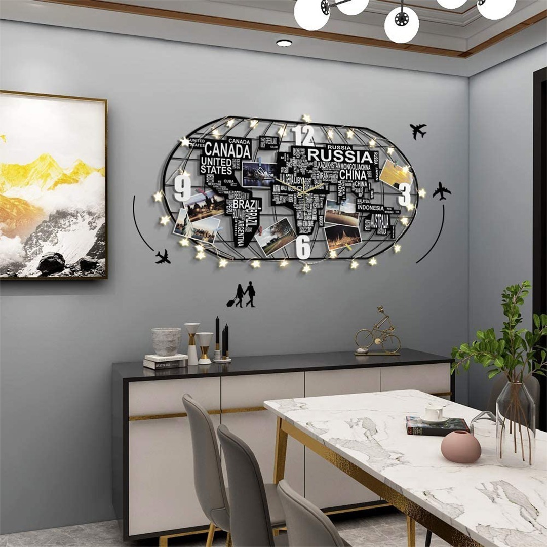 – Material: de metal y tablero de fibra de densidad media con diseño de mapamundi, hecho de tablero DM de 0.354 in y metal duradero con material de laca de alta temperatura, y decoración con hermosa luz LED de estrella (contiene 1 guía con 10 estrellas). Tamaño: Tamaño del reloj completo: 78 X 40 cm (margen de error de +/- 0.4 – 0.8 cm). La imagen es solo para referencia. Ten en cuenta el tamaño. – Diseño moderno: decoración para hoteles, oficinas, salas de estar, dormitorios y – otras habitaciones de tu hogar. Movimiento silencioso: silencioso, barrido, movimiento de cuarzo, sin tictac, disfruta de un ambiente tranquilo. – Batería: 1 pila de carbono AA, no incluida, por favor, no utilice pilas alcalinas o pilas recargables, los relojes de pared deben utilizar pilas de carbono.