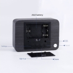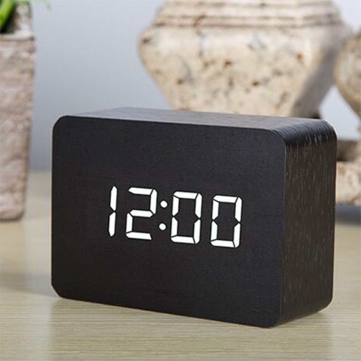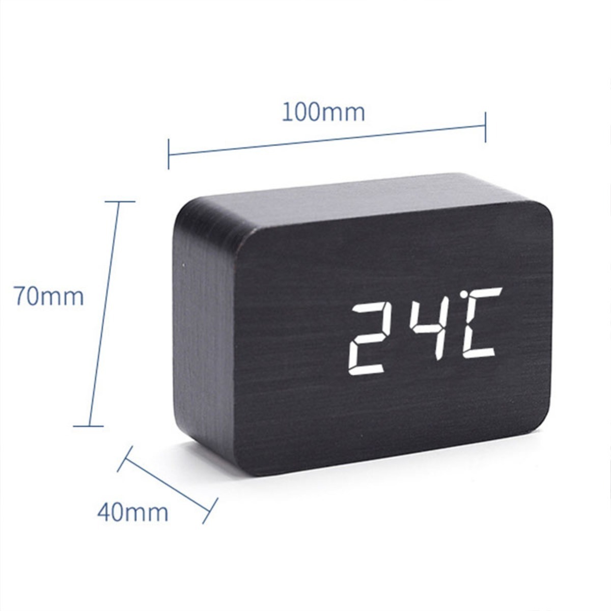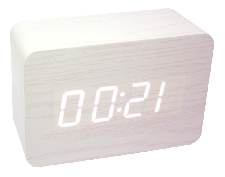 Especificaciones: – Origen: China. – Color: Blanco, Negro – Color LED: Azul, Blanco, Rojo y Verde – Medidas: 10cm x 7cm x 4 cm. – Carga: USB / 3 Pilas AAA. – Función: Temperatura, Alarma y Fecha – Incluye: Reloj Madera Digital, Cable USB y Manual. – Diseño práctico y sofisticado.