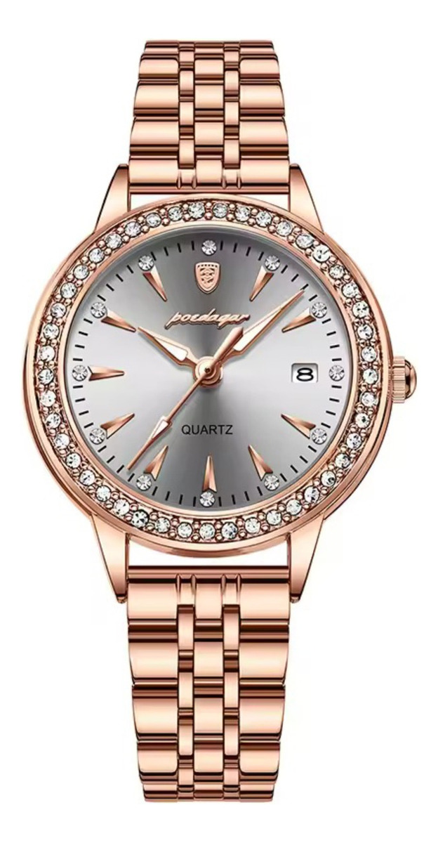 Reloj Elegante con Correa de Acero Inoxidable Ultrafino, perfecto para quienes buscan estilo y sofisticación. Su diseño refinado con detalles de zirconia y acabado en acero inoxidable lo hace resistente y duradero. Con un perfil delgado y ligero, se adapta cómodamente a la muñeca, ideal para cualquier ocasión. Cuenta con corona para ajustar las agujas y el calendario, tambien cierre tipo mariposa. Incluye una pila y un paño para limpiar.