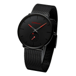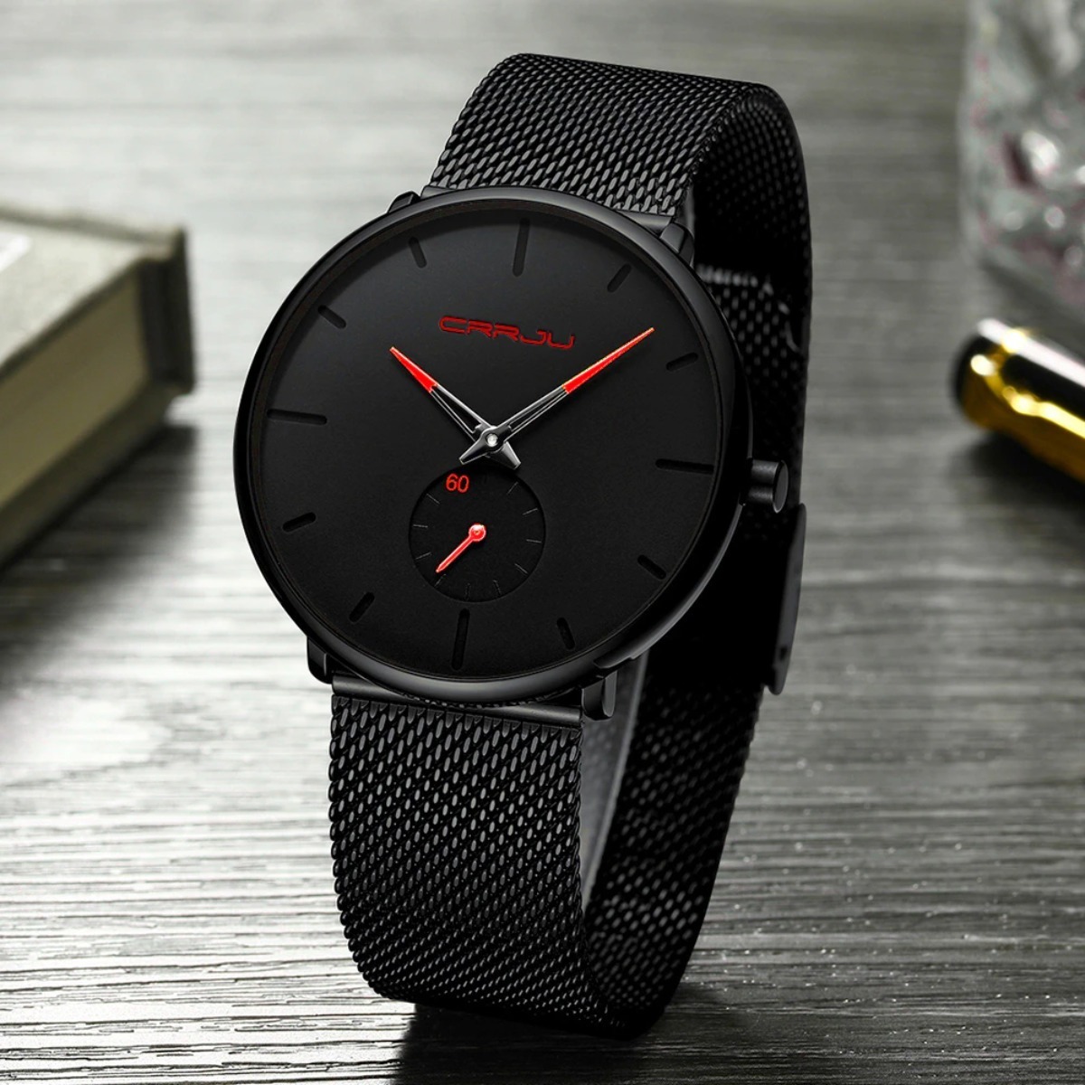 Reloj Negro Hombre Crrju Alta Calidad Detalles En Rojo