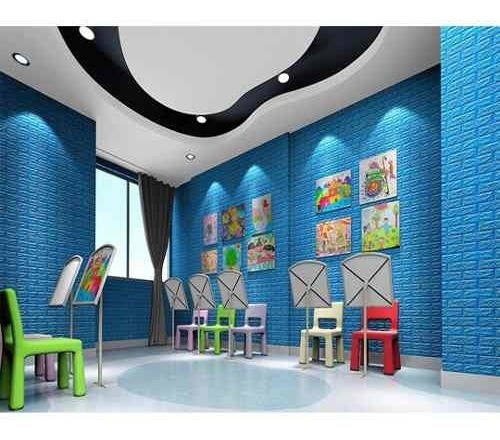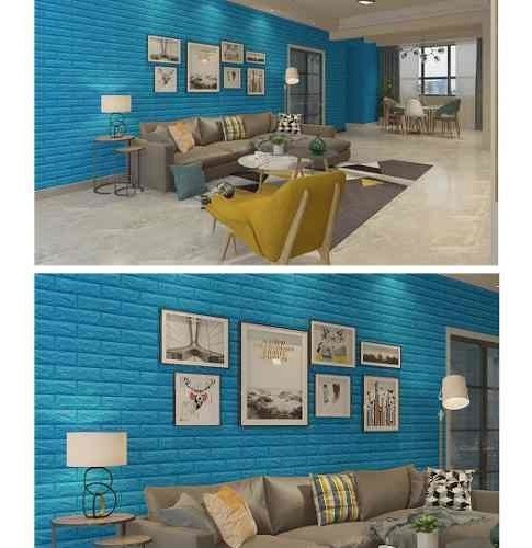 Revestimiento Adhesivo Panel 3d Simil Ladrillo Celeste 0.8mm