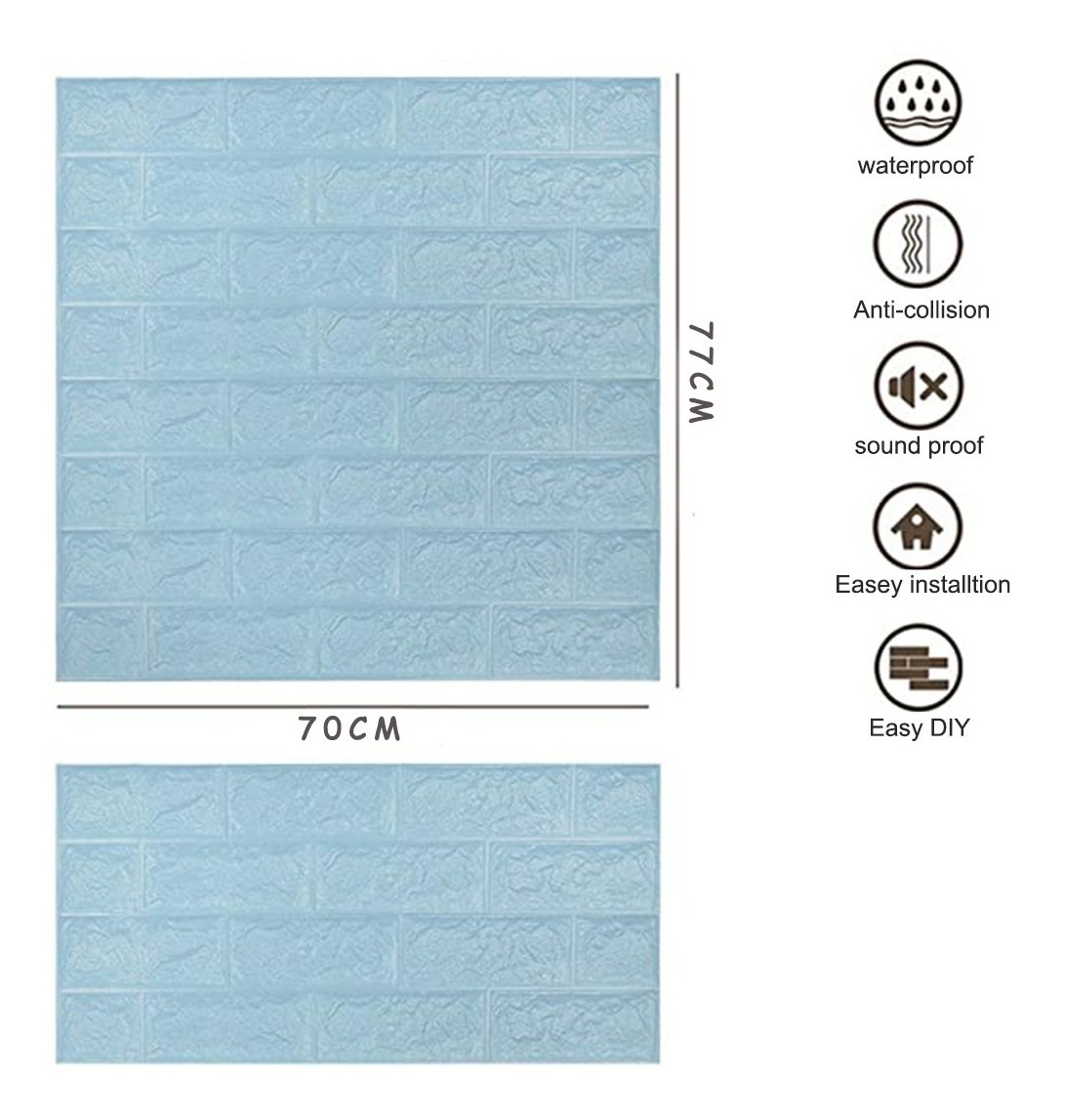 – Paneles Autodhesivos 3D Simil Ladrillo Blanco. – Medidas: 70 cm (largo) x 77 (alto) cm x 0,80 (espesor) cm. – Cada Panel Presenta 0,53 m2. – Resistentes al agua ,fácil de limpiar se puede pintar con aerosol del color que más te guste.