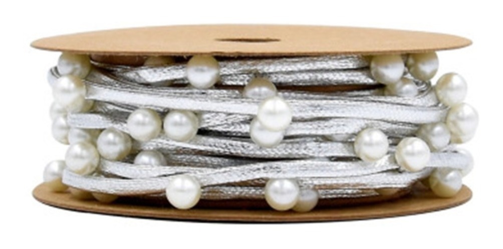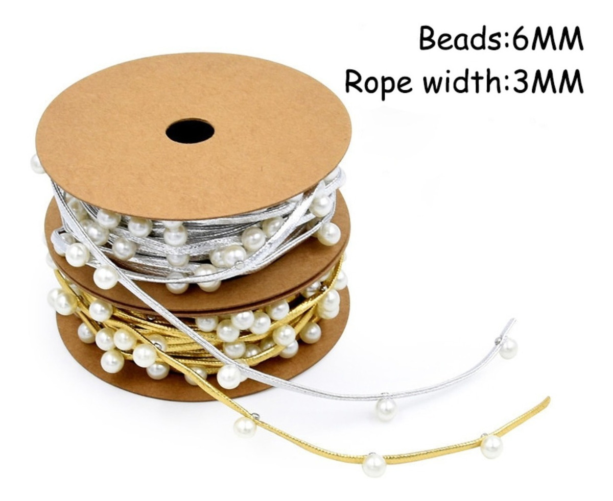 Largo del rollo: 3m Ancho de la cinta: aprox 3mm Diámetro de las perlas: aprox 6mm