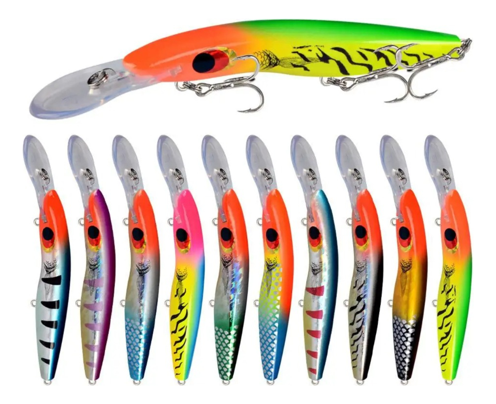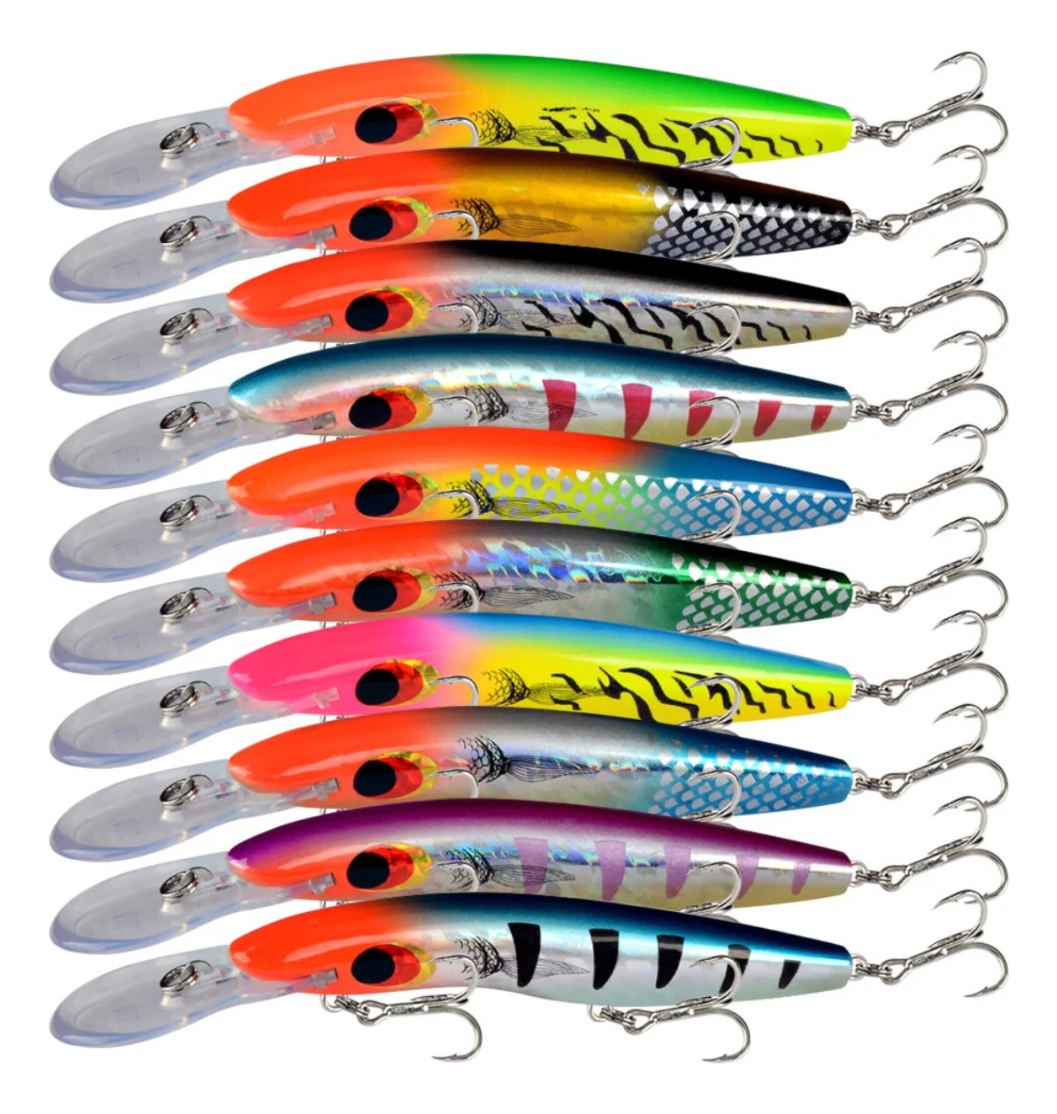 DescripciónSeñuelo MinnowMedidas: 16 cm de largo, peso: 26grsConsultar por colores. Varios colores.Tiene 3 ganchos con 3 anzuelos cada gancho.