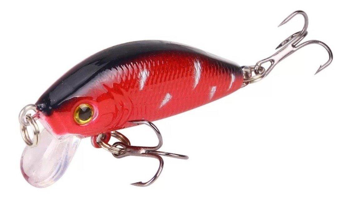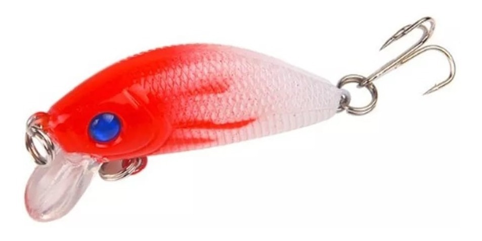 -Set de caja organizadora con 5 señuelos media agua de 5 cm. Ideal para pesca de tararira. Características: Longitud: 5cm Cada señuelo contiene 6 ganchos. Profundidad de inmersión: 0.5 – 1.5. Peso: 4.2 g. Colores que incluye el set: rojo c/negro, rojo c/blanco, amarillo, amarillo c/negro y uno de los colores repetidos (el color que se repite sera según la disponibilidad de colores al momento).