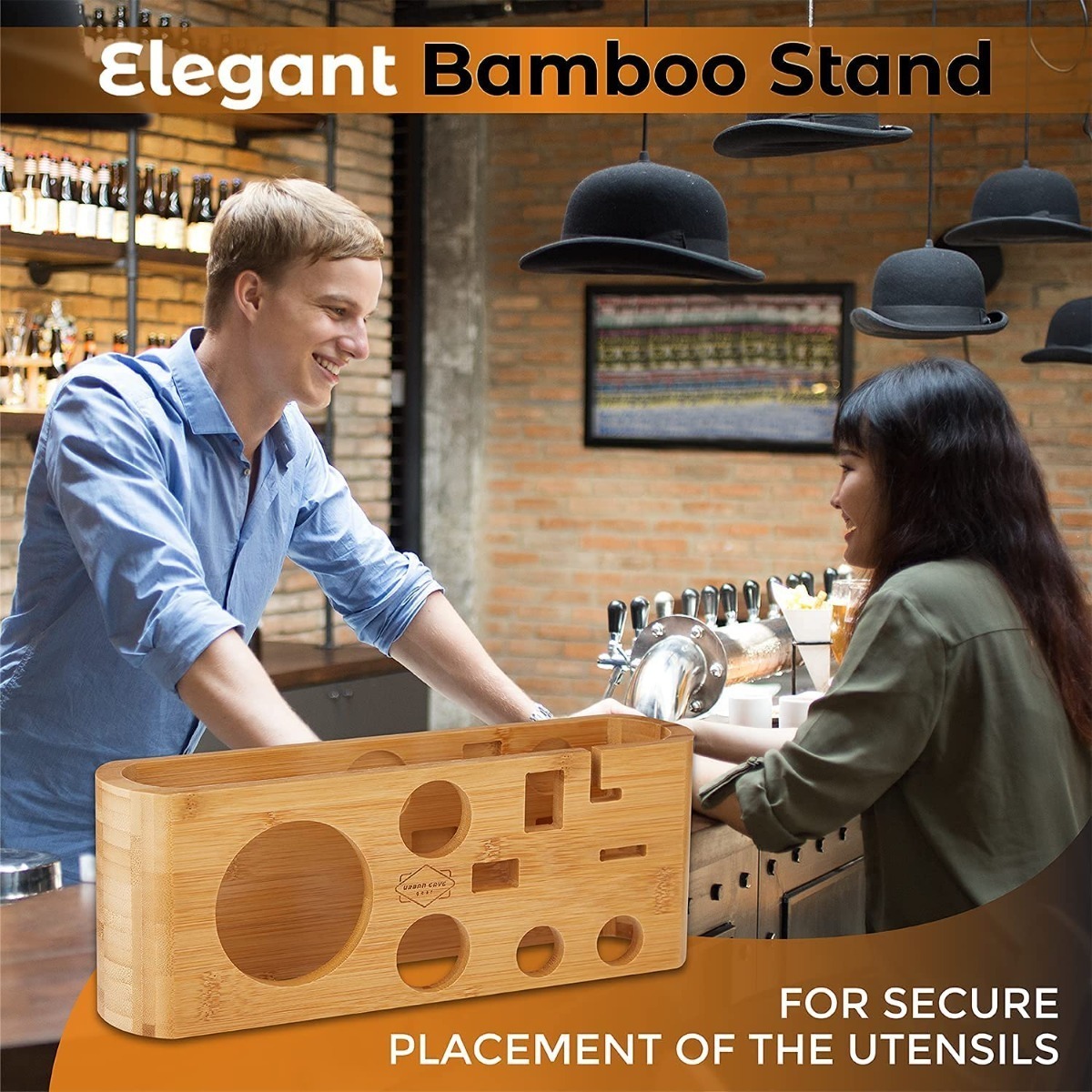 Set 10 Piezas Juego Cocteleria Barman Acero Inoxidable Base de Bambu |