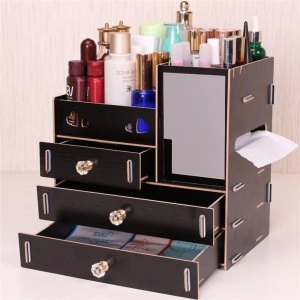 Organizador Cosmeticos Exhibidor Maquillaje Madera Espejo