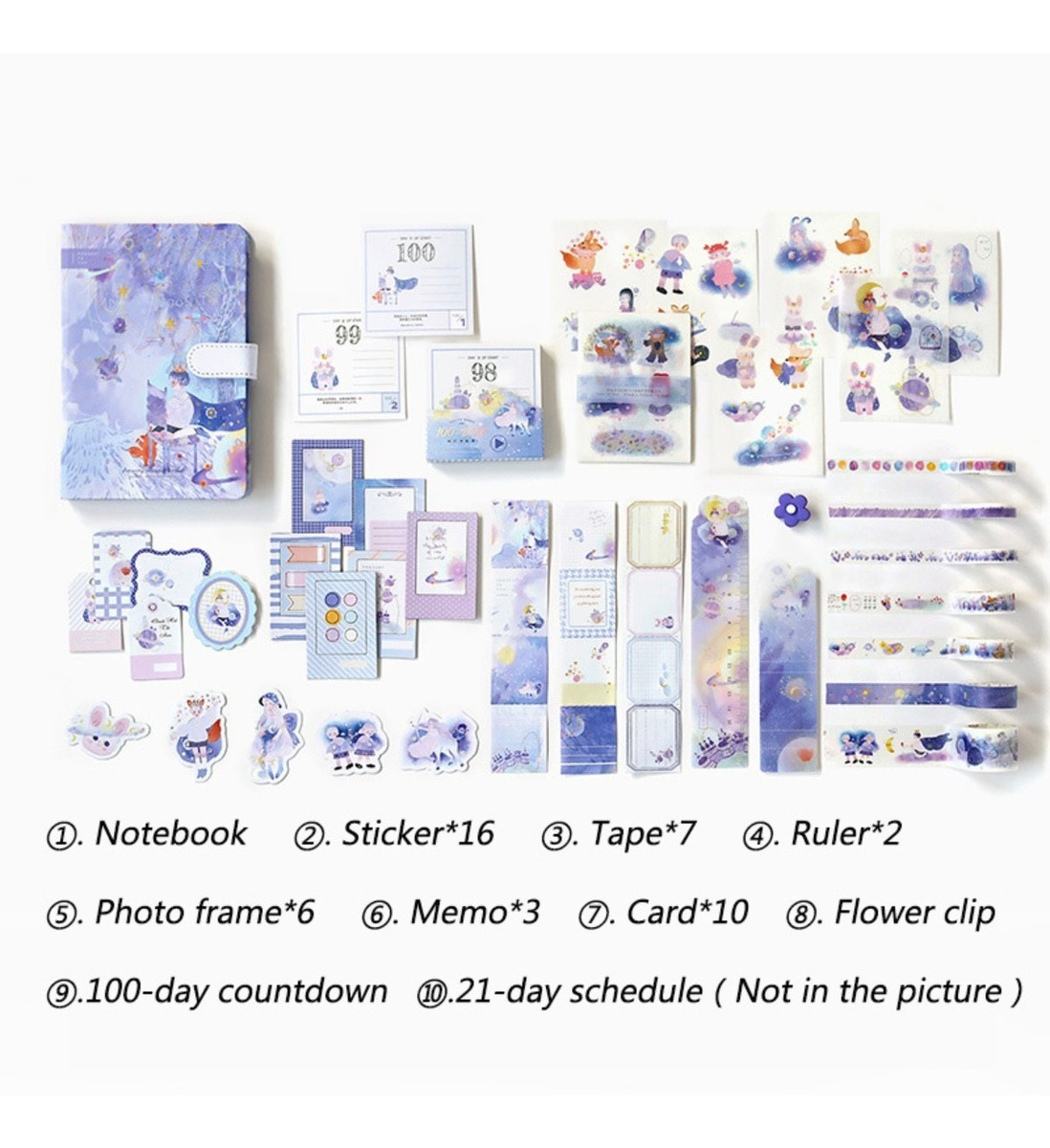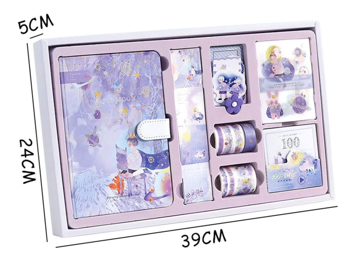 Set de diario intimo ideal para scrapbooking, incluye sticker, washi tape, regla, calendario El diario cuenta con + de 200 páginas entre cuadriculadas, lisas y a rayas, todas con diseños acorde a la opción elegida así como espacio para escribir.