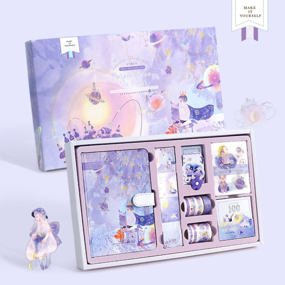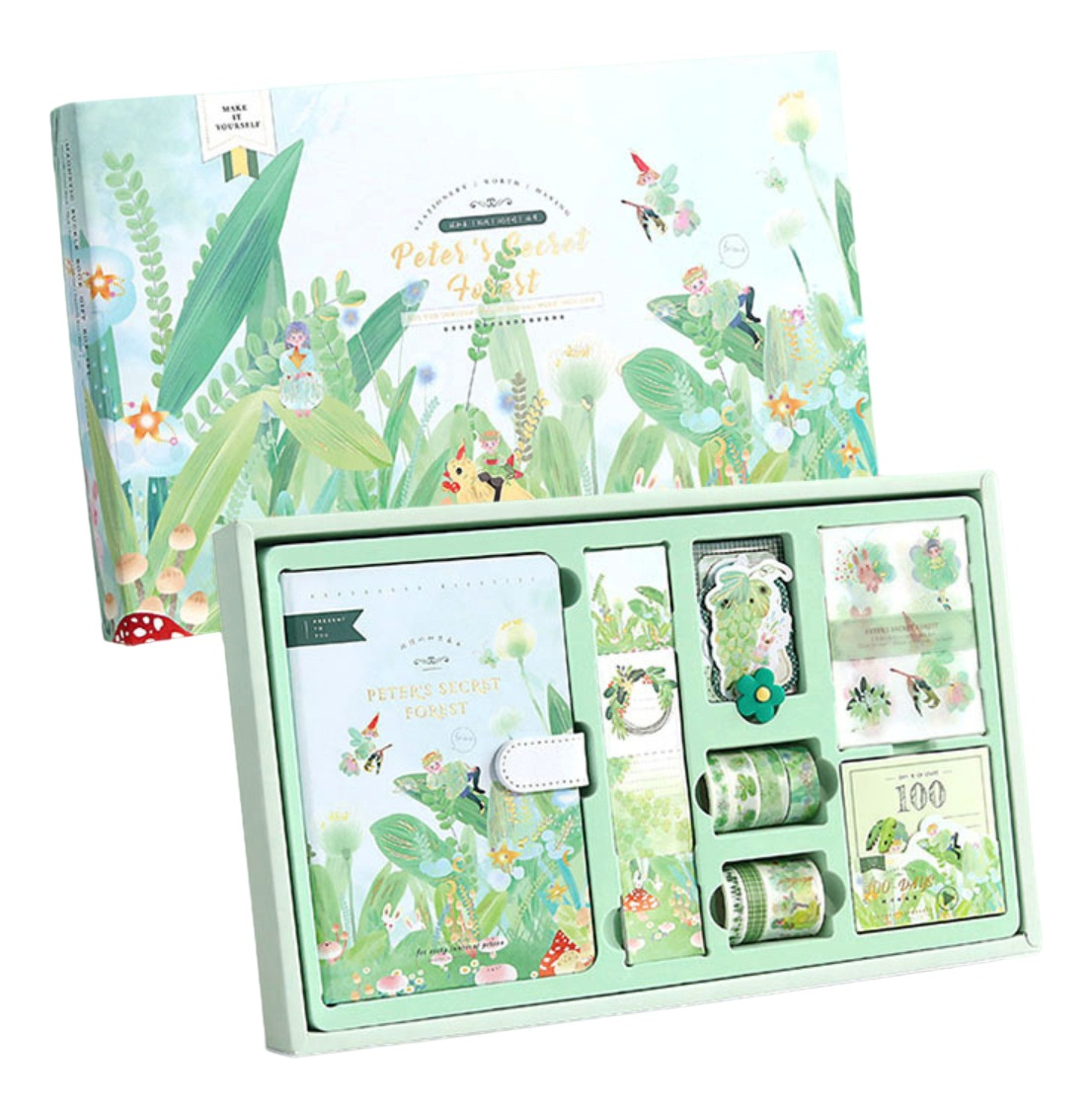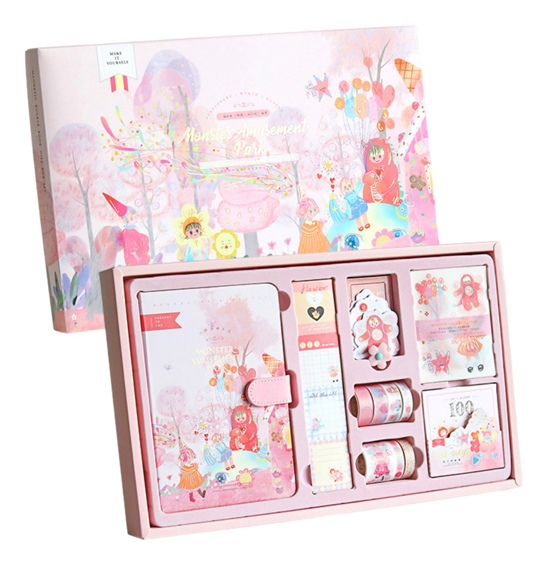 Set Cuaderno Diario Intimo + Stickers Reglas Cintas Y Más