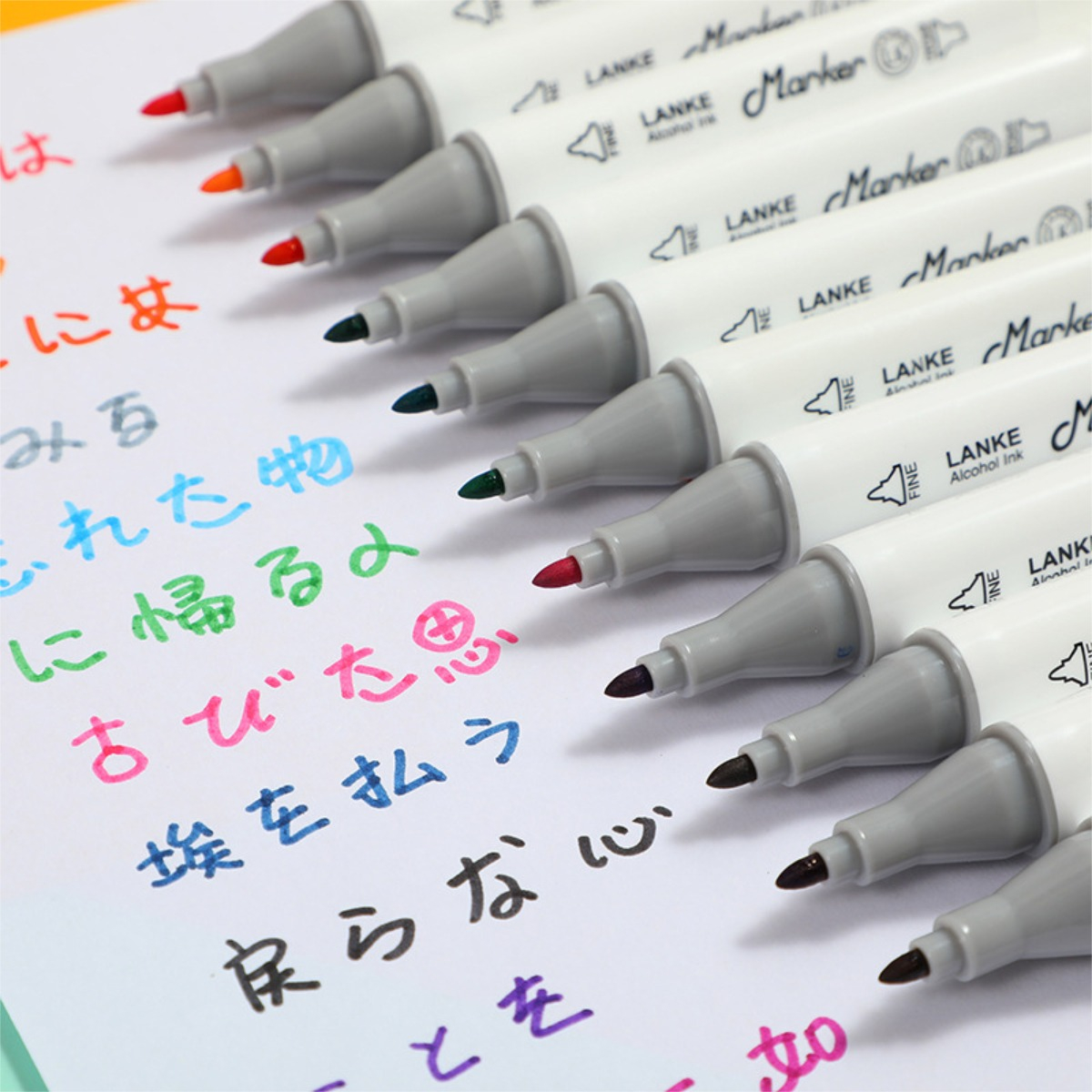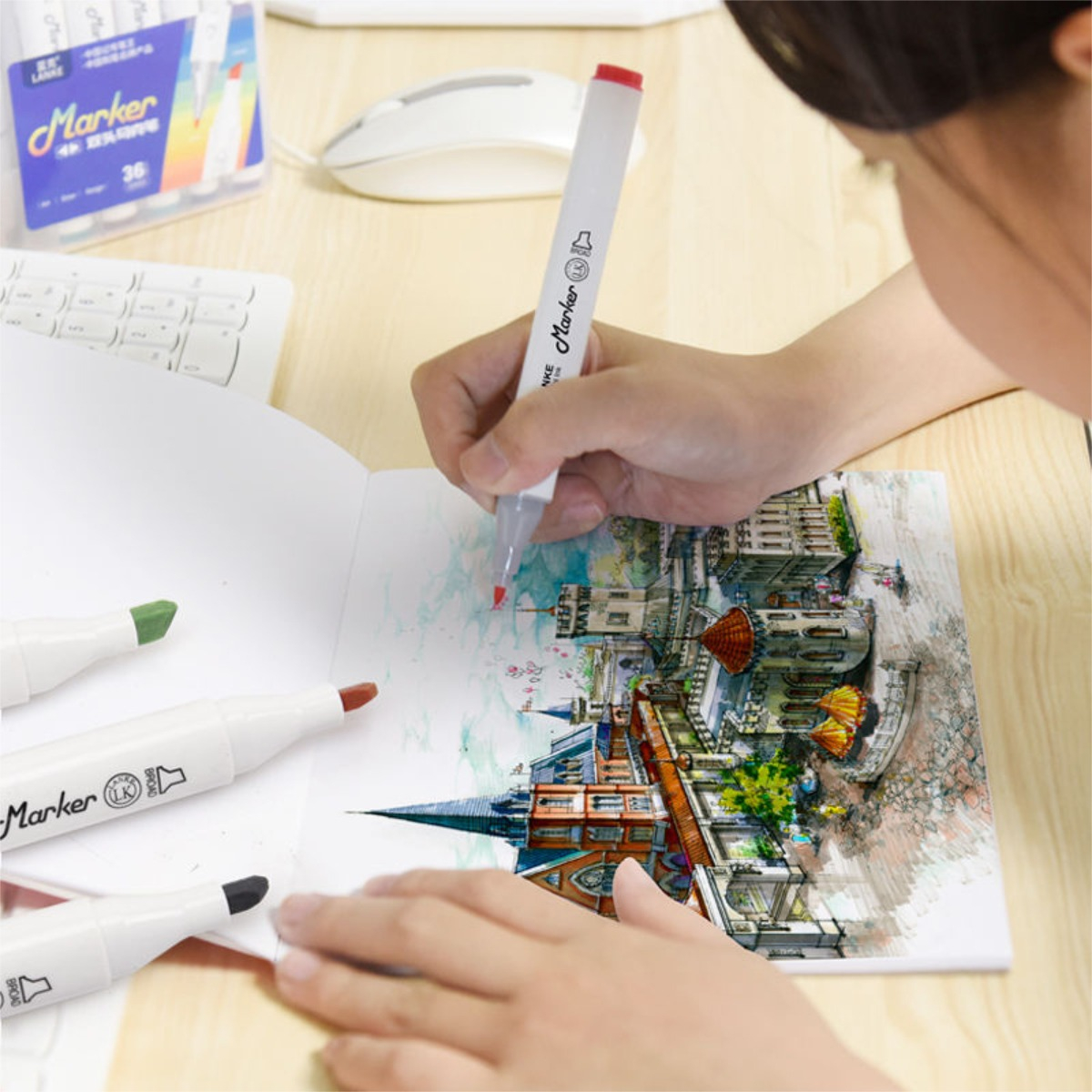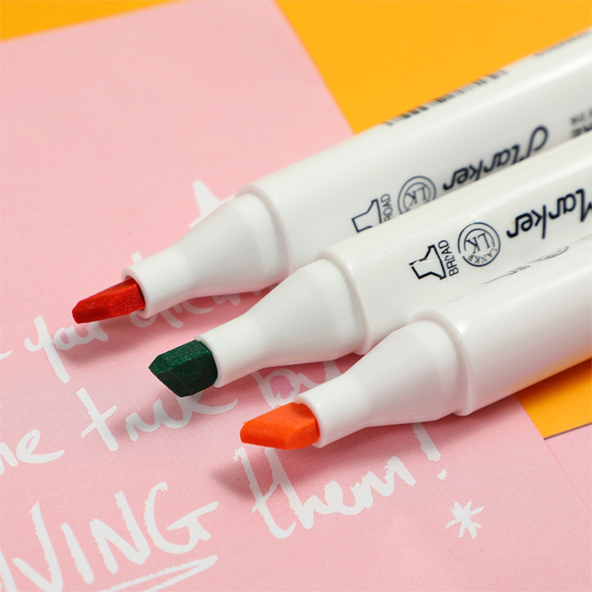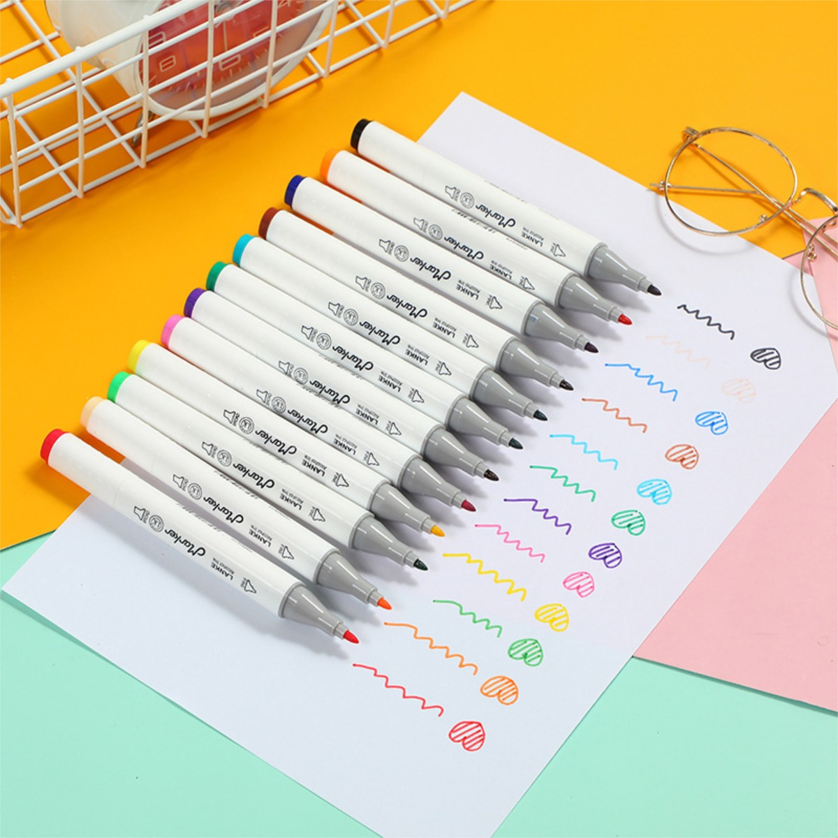 El set consta de 24 marcadores de doble trazo, cada uno de ellos con una punta fina en un extremo y una punta chata en el otro. Esto te permite realizar trazos precisos y líneas más anchas con facilidad, brindándote una mayor flexibilidad creativa.