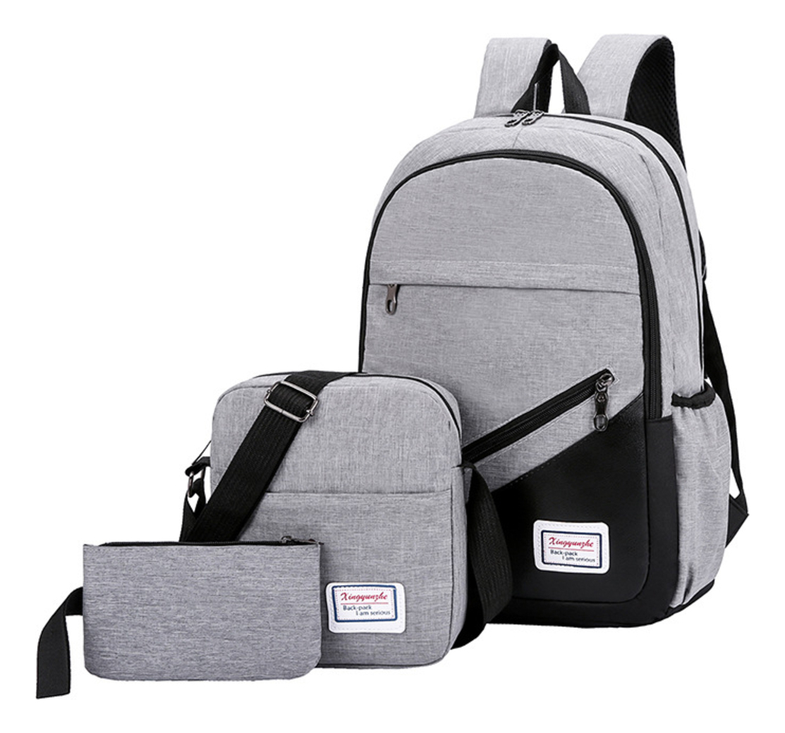 Este práctico set 3 en 1 incluye una mochila, bandolera y cartuchera, todo lo que necesitas para tu día a día. La mochila cuenta con 3 bolsillos externos y un compartimiento interno con cierre, además de detalles en cuerina que le dan un toque elegante. Incluye un puerto USB y salida para auriculares, ideal para mantener tus dispositivos siempre conectados. La bandolera tiene dos compartimientos, perfecta para llevar tus objetos esenciales. Completa el conjunto la cartuchera, útil y a juego con el resto del set.