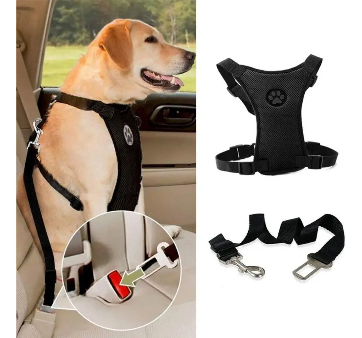Set De Arnés + Correa De Seguridad Para Perros En El Auto
