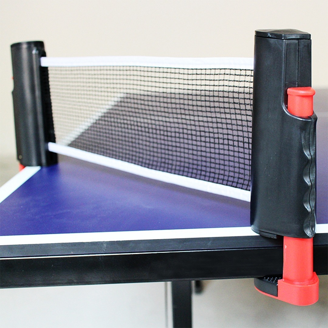 ¡Lleva la diversión a cualquier lugar con este práctico set de ping pong portátil! Incluye una red retráctil con sistema de pinzas ajustables que se adapta fácilmente a cualquier mesa de hasta 1,70 cm de ancho, permitiéndote armar una partida en segundos.