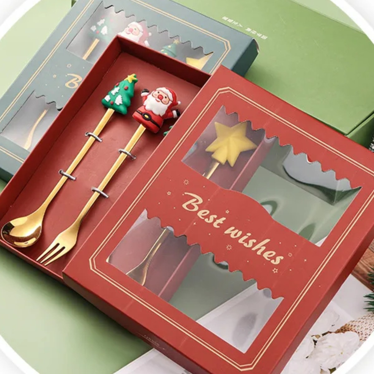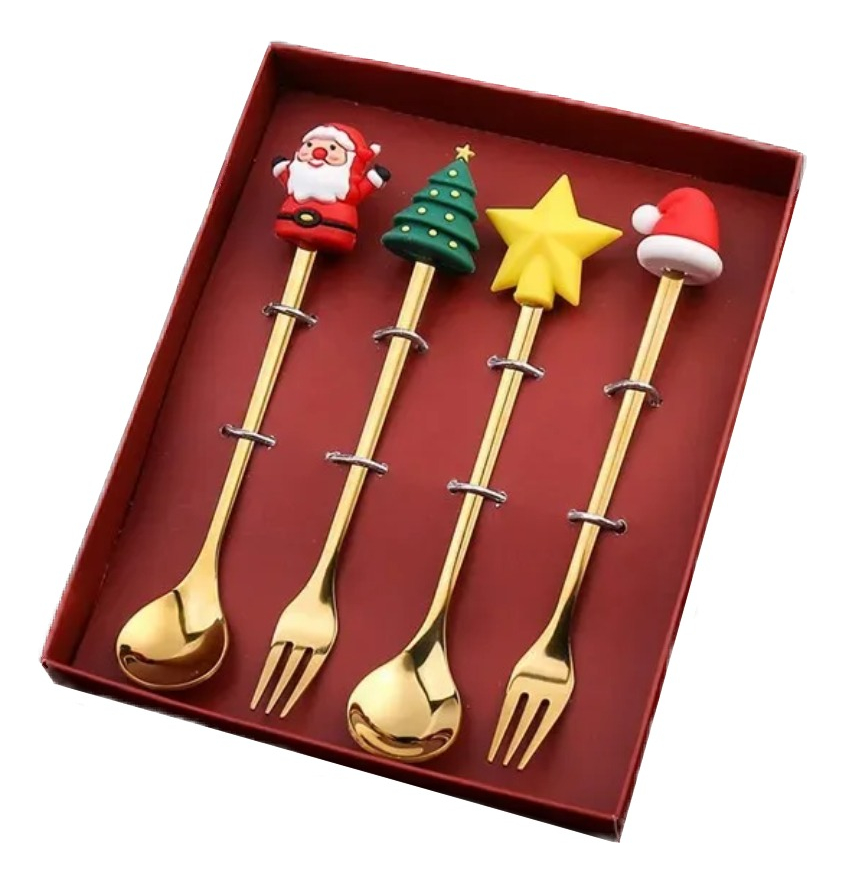 //Juego De Cubiertos 4 Piezas Dibujos Formas Navidad//