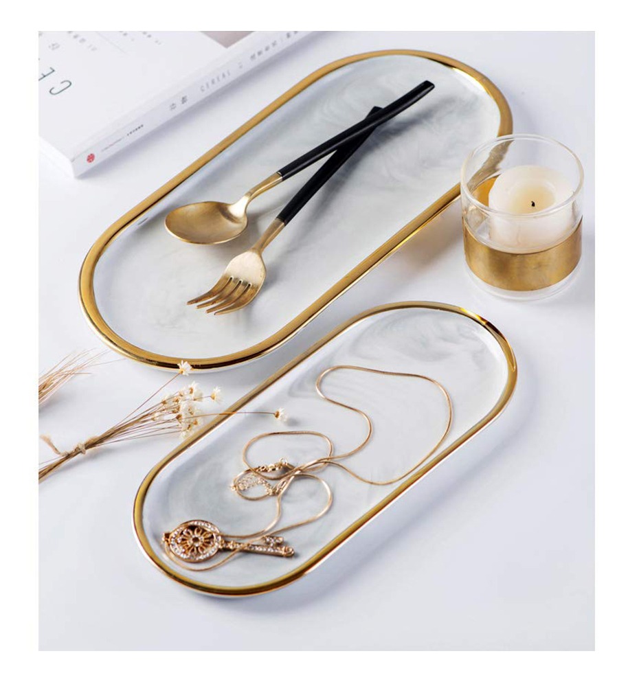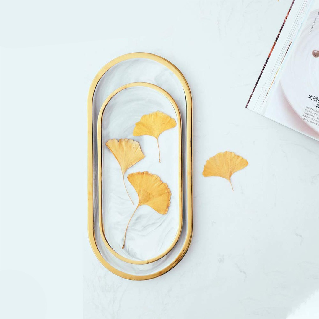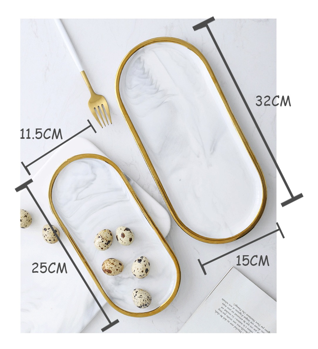 Set de dos Bandeja de cerámica para gastronomía, también se puede utilizar como bandeja de almacenamiento para joyería. Su forma es ovalada una de las bandejas mide 11.5 cm *25cm y la otra 15cm*32cm.