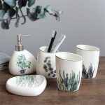 Set x5 Piezas Accesorios De Tocador Para Baño De Ceramica |