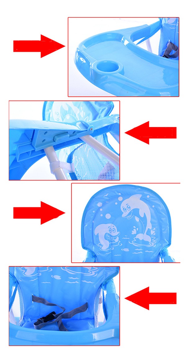 – Sillita para comer. – Cinturón de seguridad. – 2 Alturas posibles. – 4 Patas con apertura para mayor seguridad. – Fácil de limpiar. – Seguros traseros. – Apoya pies. – Peso del producto: 3 kg. – Peso soportado: 25Kg aprox – Medidas: Altura total 97 cm / Ancho total 50 cm / Profundidad 64 cm. – Color: CELESTE / ROSADO.