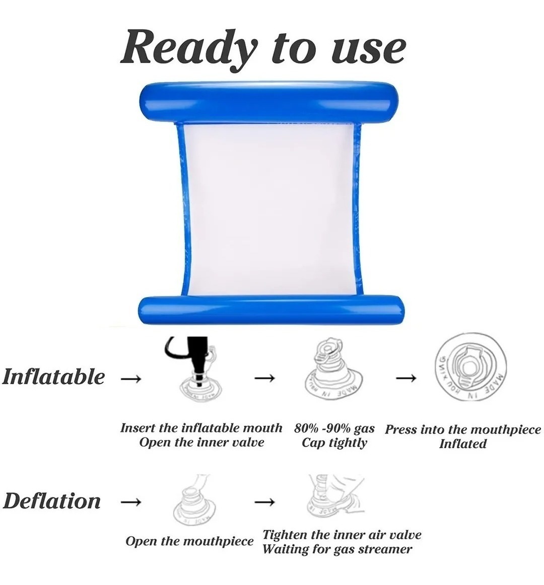 – Fácil de almacenar y transportar: esta hamaca de agua es plegable y compacta, puedes inflar y desinflar la hamaca de agua rápida y fácilmente, simplemente enróllala para un fácil almacenamiento. Perfecto para el océano, piscina, lago y río. – Cómoda y duradera: esta hamaca de agua está fabricada con PVC respetuoso con el medio ambiente, no tiene olor y no es tóxica, segura y no daña tu salud. Diseño ergonómico que proporciona una mayor comodidad. Es muy duradero, suave y de secado rápido. – Gran capacidad de carga: cada hamaca de agua ha sido detectada hasta 249.1 lbs. Es grueso y no se desgasta fácilmente; el material del medio: malla suave y cómoda. Edad recomendada: 16 años y más. Capacidad máxima de peso: 250 libras. Hamaca de agua recomendada para adultos o niños bajo la supervisión de un adulto.