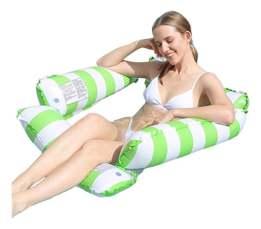 Medidas: 123 cm de largo x 120 cm de ancho Material: Pvc Colores: Azul / Verde Incluye: Inflador