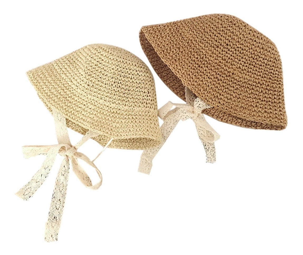 Sombrero De Encaje Con Lazo Para Niña Estilo Paja Verano