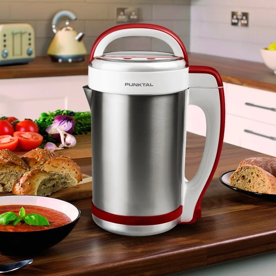 Sopera PUNKTAL 1,3L de capacidad para hacer hasta 4 platos de sopa a la vez. Potencia de 1000W Programa de cocina inteligente y fácilmente programable, fabricada en acero inoxidable para mantener el calor por más tiempo.