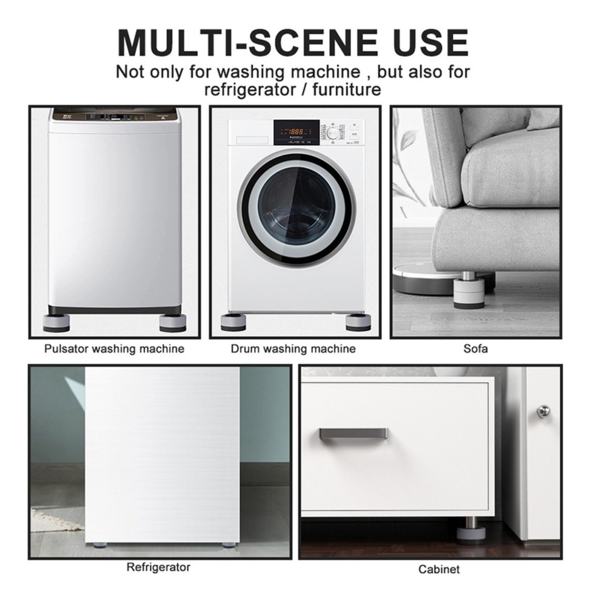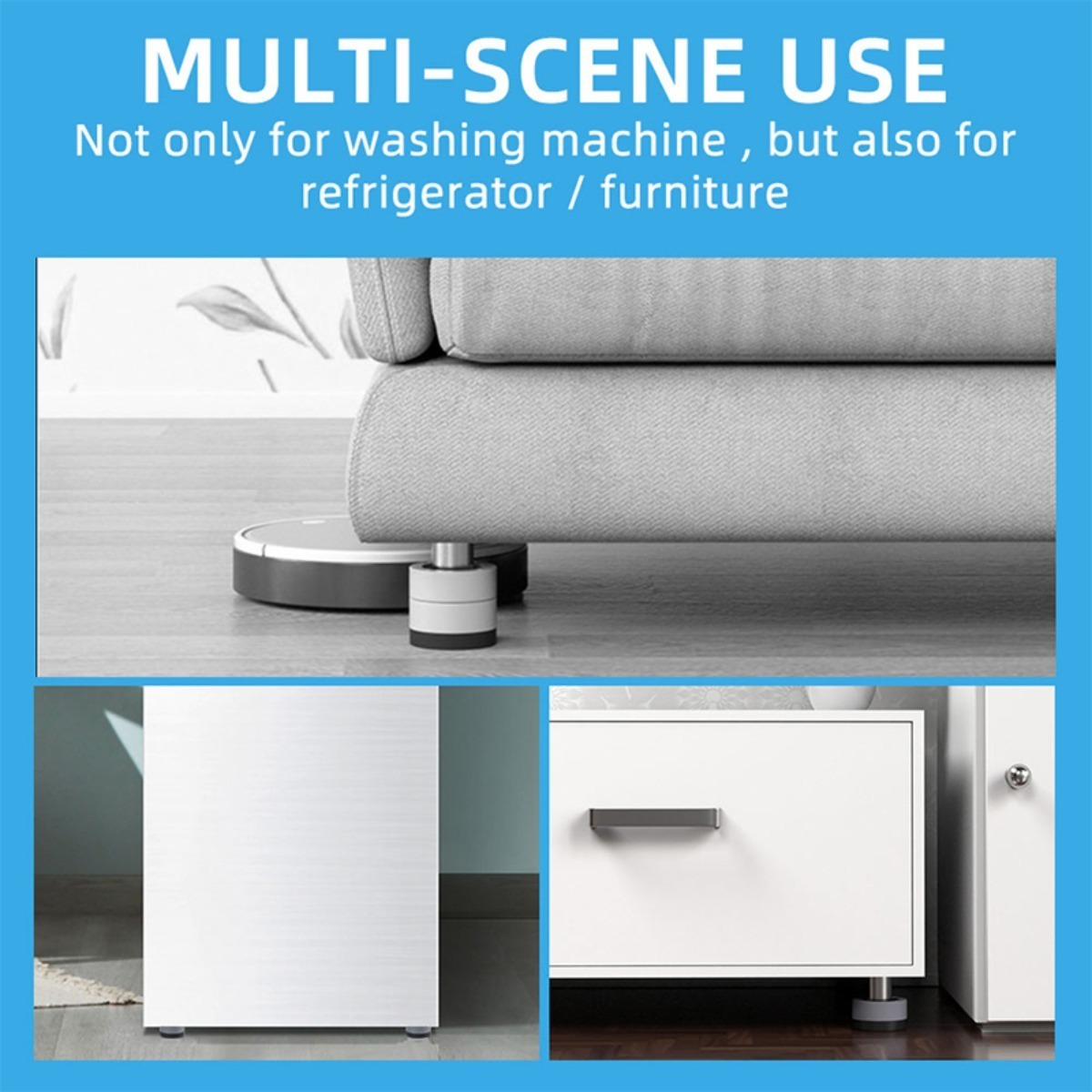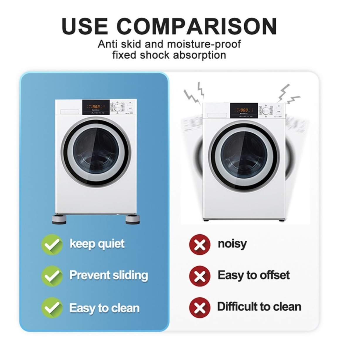 Cuando la secadora o la lavadora se agite completamente o los muebles se muevan, harán ruidos desagradables. Estas cómodas y compactas bases pueden reducir eficazmente el ruido, crear un ambiente cómodo y evitar que los vecinos se quejan. Levante los muebles y electrodomésticos en unos pocos centímetros para facilitar la limpieza y encontrar cosas en el suelo, evitando eficazmente la humedad y el moho.