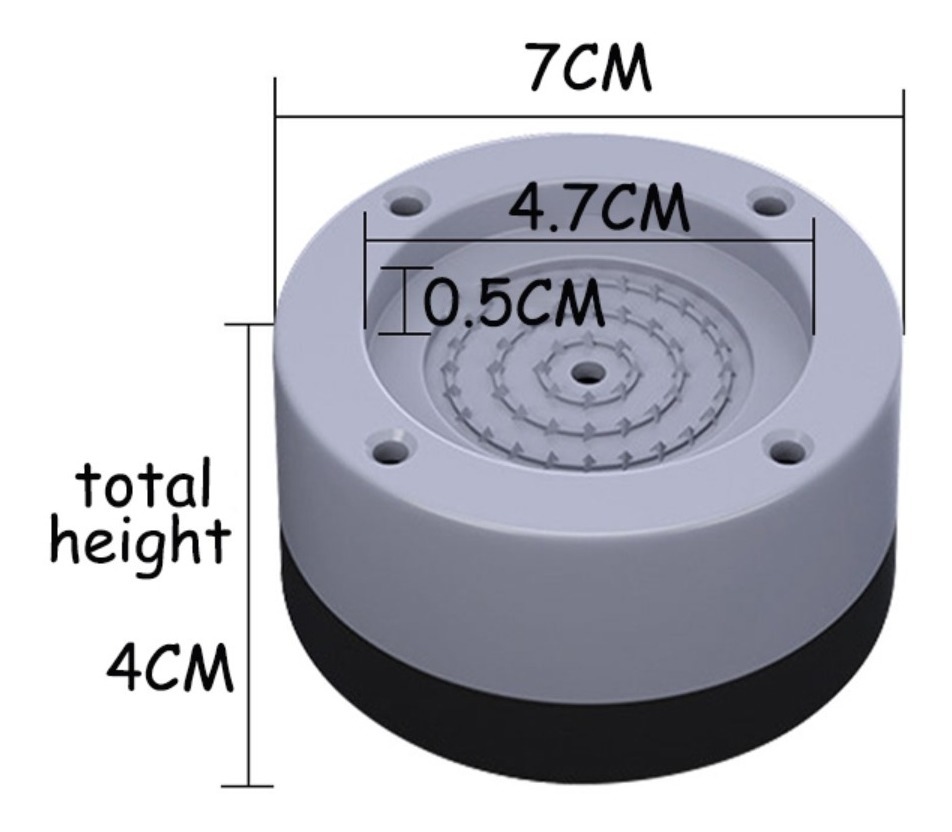 Excelente calidad. Fácil de instalar Pies por 4 unidades para base de muebles, lavarropas, heladera y más. Material: Plástico resistente y Goma. Anti choque y anti deslizante. Medidas: 9cm de diámetro total. Cavidad interior para 4 cm y 5 cm de diámetro.