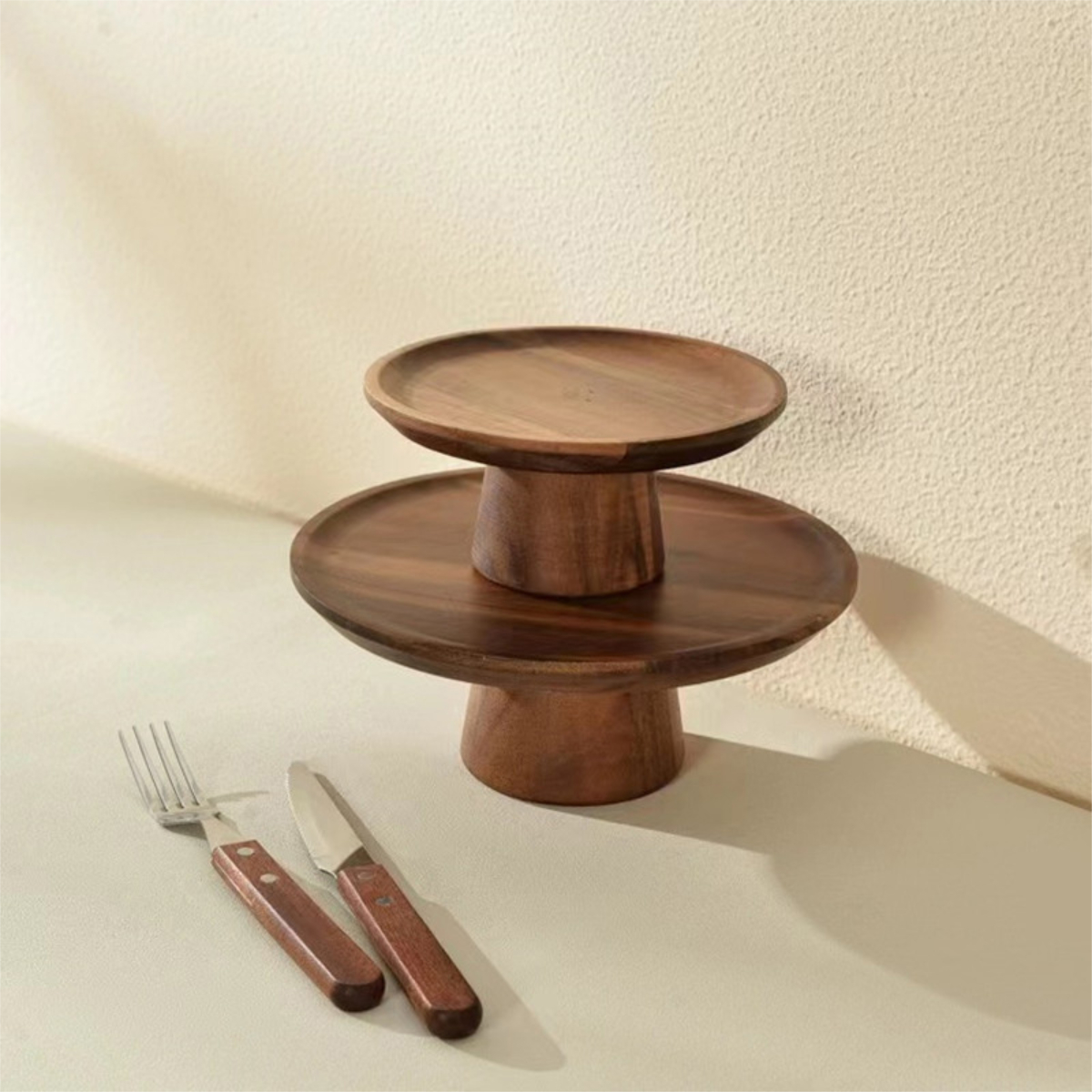Exhibe tus tortas y postres con estilo en este elegante soporte de madera con pie, diseñado en un tamaño compacto perfecto para espacios pequeños. Ideal para cualquier ocasión, su diseño clásico y natural resalta la presentación de tus dulces favoritos. Robusto y funcional, este soporte es una adición encantadora a tu cocina o mesa de postres en una sola pieza