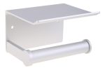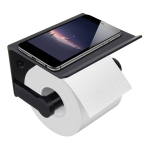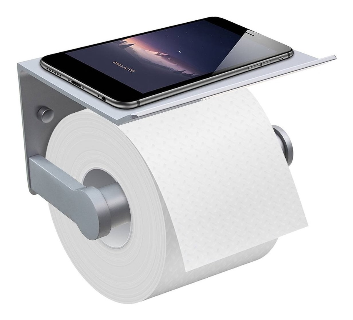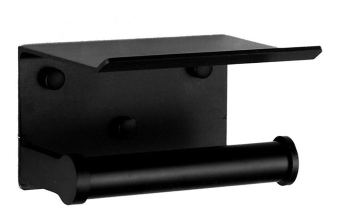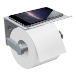 Portarollo de papel higiénico en acero inoxidable, con base apoya celular. Estilo moderno / minimalista. Incluye kit de instalación.