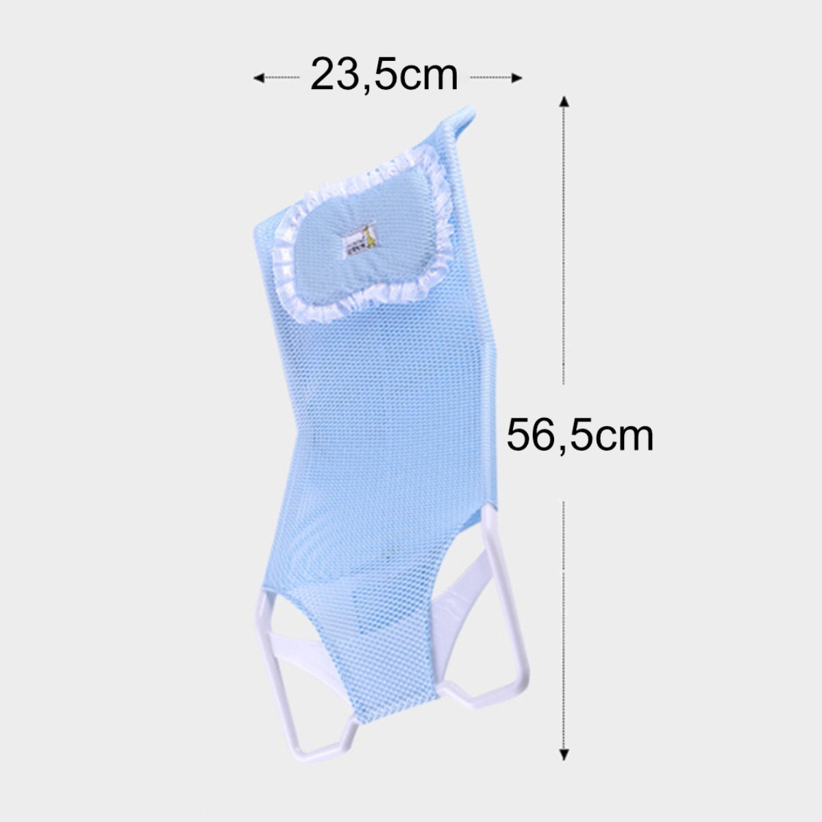 Soporte para usar con bañito, palangana, etc. para bañar bebés de manera más segura. Su tela rejilla impide que el agua se acumule donde está el bebé, mientras que provee flexibilidad y suavidad para que esté cómodo. Gracias a su formato puede tanto a bañeras para bebé, palanganas multiuso y varias otras opciones para que puedas bañar tranquilamente a tu bebé.