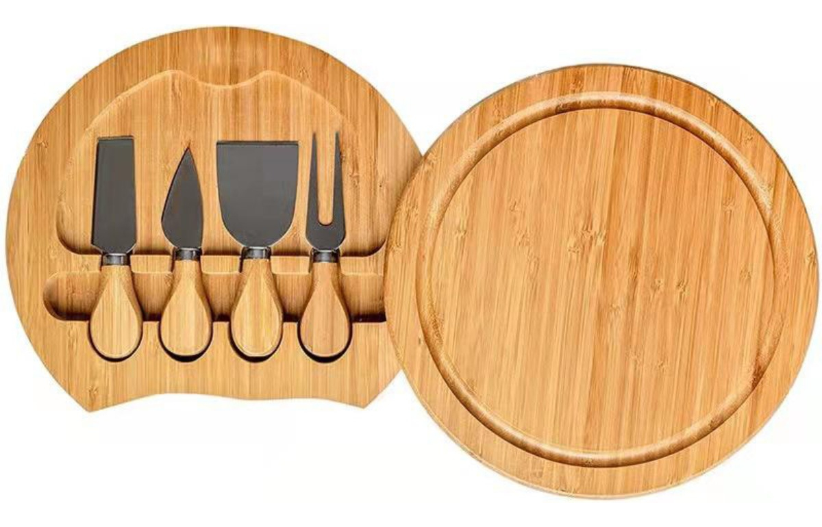Tabla Copetin Circular Tabla De Quesos + Kit Cuchillos