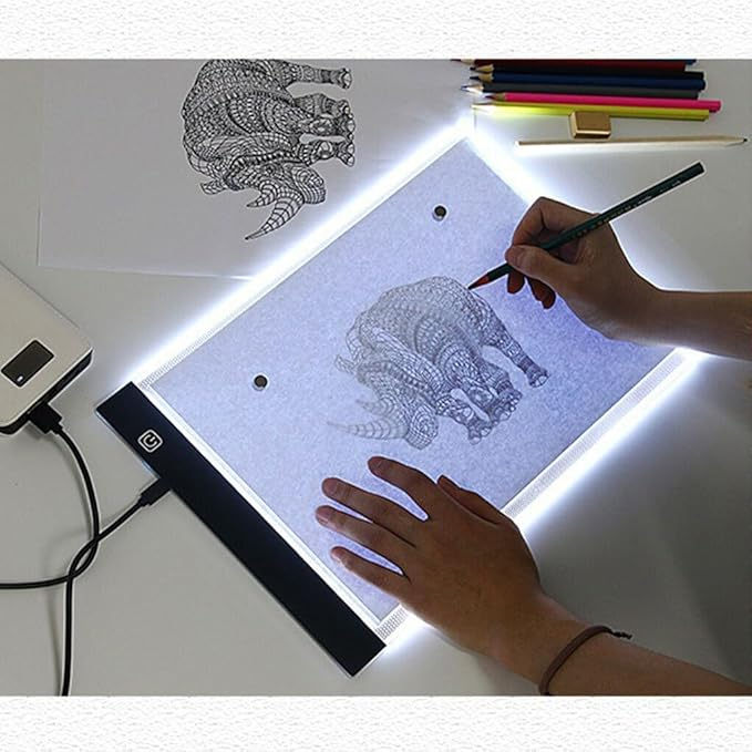 – Alimentación USB: La caja de luz está equipada con un cable USB de 2 m que se puede conectar a una computadora portátil, alimentación móvil, toma de corriente, etc. Fácil de trabajar en cualquier lugar y dibujar
