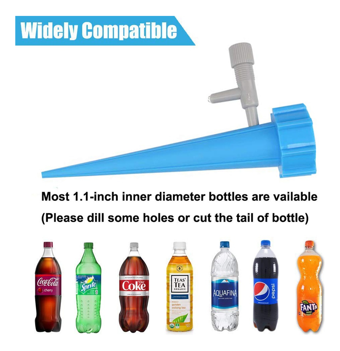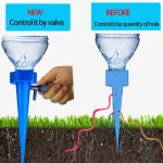 Fácil de usar: No hay ninguna instalación compleja, simplemente taladre algunos agujeros en la parte inferior de la botella o cortarlo y luego una válvula reguladora que puede ajustar la velocidad del flujo, dar una cantidad de agua para diferentes plantas y flores.