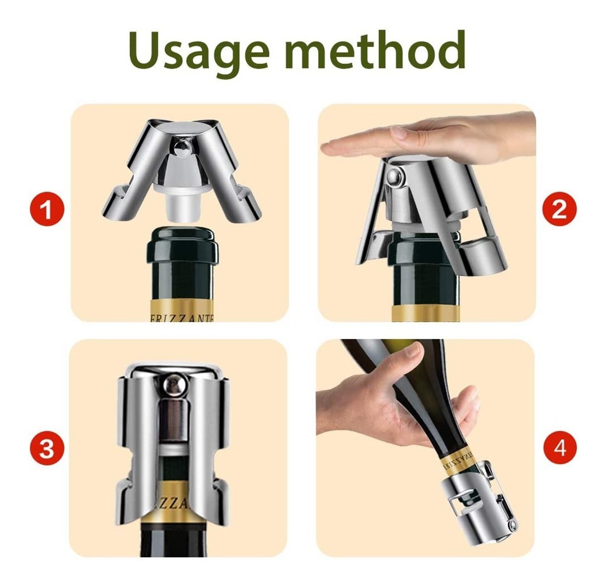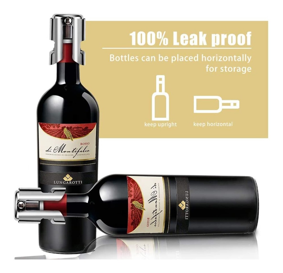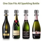 – Los tapones de botella de champán proporcionan una mejor estanqueidad de aire para extender y preservar la botella de champán abierta. – Nuestro tapón de champán está hecho de acero inoxidable de alta calidad y silicona de grado alimenticio. La silicona se ajusta firmemente al cuello de la botella, formando un sello hermético, sin derrames ni fugas, mantiene el sabor fresco del champán. – Es muy fácil de usar, simplemente inserta el tapón de champán en la botella y pliega la tapa con bisagras para bloquearlo en el borde inferior de la botella de vino espumoso. Puedes enjuagar con agua fría para limpiar el tapón de champán y también es apto para lavavajillas. – Se adapta a la mayoría de botellas de champán, cava, prosecco y vino espumoso. (No apto para botellas de vino, por favor, confirma el tamaño antes de comprar).