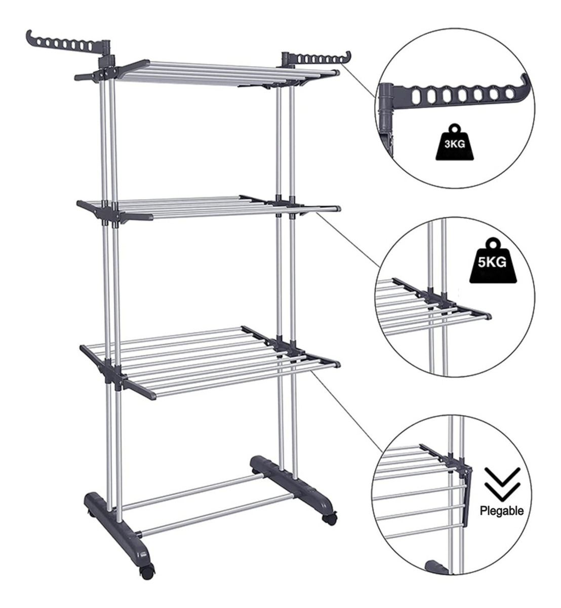 //Tendedero Para Ropa Plegable Ropa Tender 3 Niveles C/ruedas//