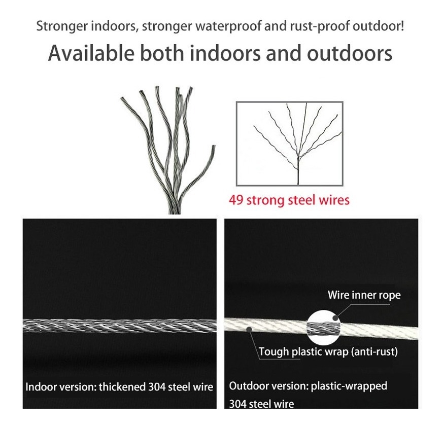 Materiales: Cuerpo de plástico Cuerda de acero Fijaciones en aluminio