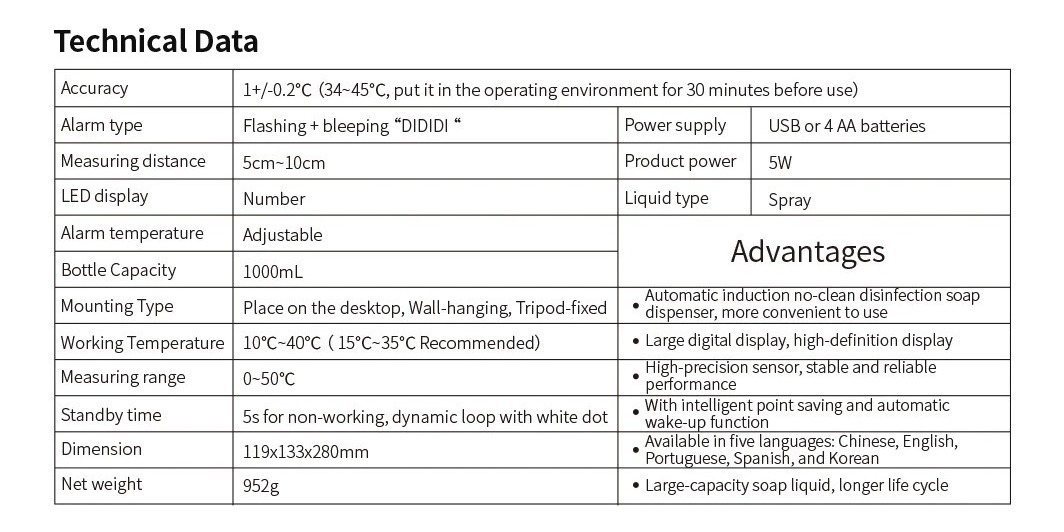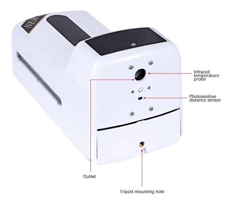 El innovador sensor infrarrojo de alta tecnología puede medir de forma segura y rápida en 0,5 segundos mientras dispensa el desinfectante.