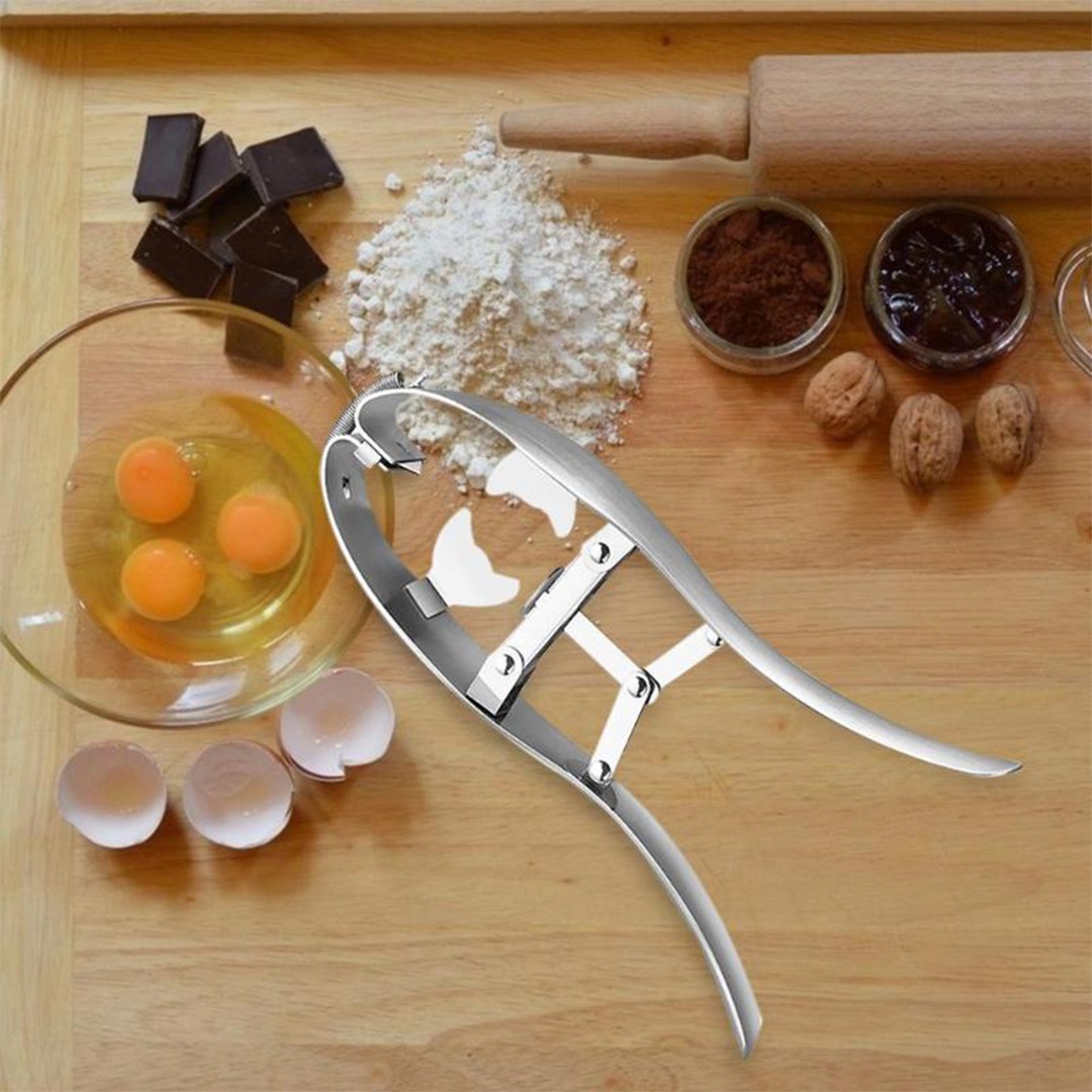Abre los huevos en 3 segundos, sin manos sucias, sin cáscara de huevo en el bol. Adecuado para cocina y hornear.Juego de Herramientas para huevos el cortador de cáscara de huevo está hecho de acero inoxidable de calidad alimentaria. Es resistente al óxido y duradero. Es apto para lavavajillas o Puedes lavarlo bajo el agua.