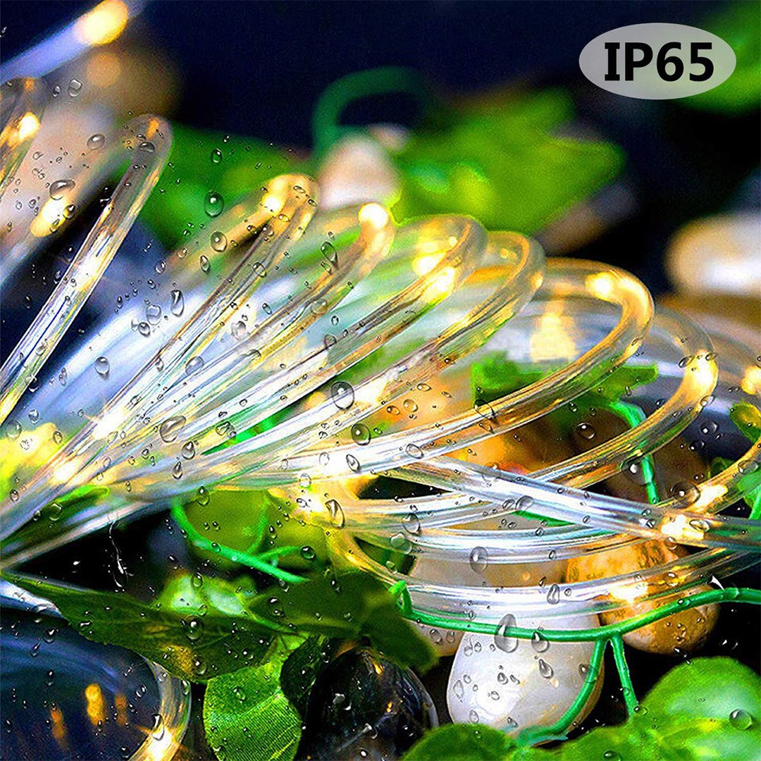 – 100 leds brillantes con un ángulo de visión estable de 360 grados que iluminan en todas las direcciones. ¡Solo enciende tu imaginación! – Alta capacidad de la batería y beneficio a prueba de agua IP65. – Diseñado con un panel solar ajustable y una batería recargable, nuestras luces solares de cable para exteriores pueden funcionar continuamente durante más de 12 horas por la noche si el panel absorbe suficiente luz solar durante el día. – Las luces LED de alambre de cobre tiene una manguera con un diámetro de 7.5MM. 100 LEDS de alto brillo, tamaño pequeño, ahorro de energía y protección del medio ambiente. – 8 modos de iluminación para crear mucha diversión. – Se pueden envolver alrededor de troncos de árboles. – Luz blanca cálida.