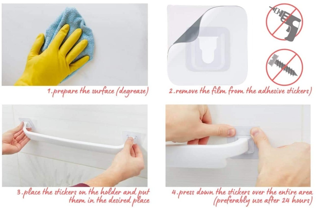 – Características: fuerte adherencia y protección contra el agua. Sin perforaciones, sin daños a la pared, fuerte adhesivo, fuerte capacidad de rodamiento, adecuado para superficies lisas, baldosas de cerámica, mármol de vidrio, etc. – Material: barra de toalla fabricada por PP, que garantiza calidad y durabilidad. Barra de toalla adecuada para la instalación en baños y cocinas. – Fácil de instalar: simplemente retira la capa protectora en la parte posterior y pégala en la posición deseada. – Sin necesidad de taladrar. Con una pegatina que no deja rastro, no tienes que taladrar agujeros en las paredes.