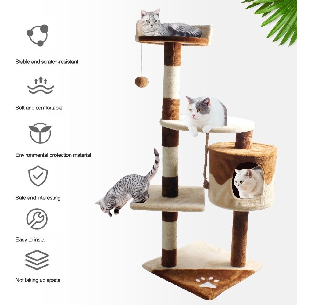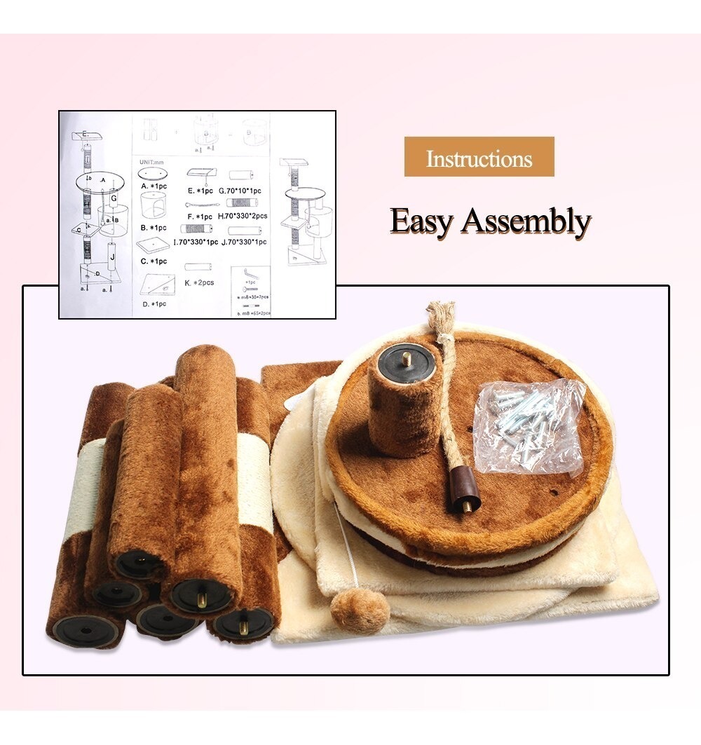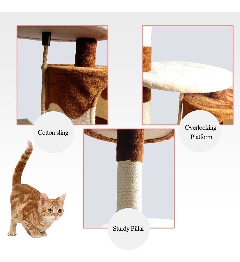 2. La columna está envuelta con una cuerda marrón blanca de sisal natural. A los gatos les gusta especialmente moler sus garras en esta cuerda de cáñamo, que resuelve eficazmente el problema de que los muebles sean dañados por los gatos;