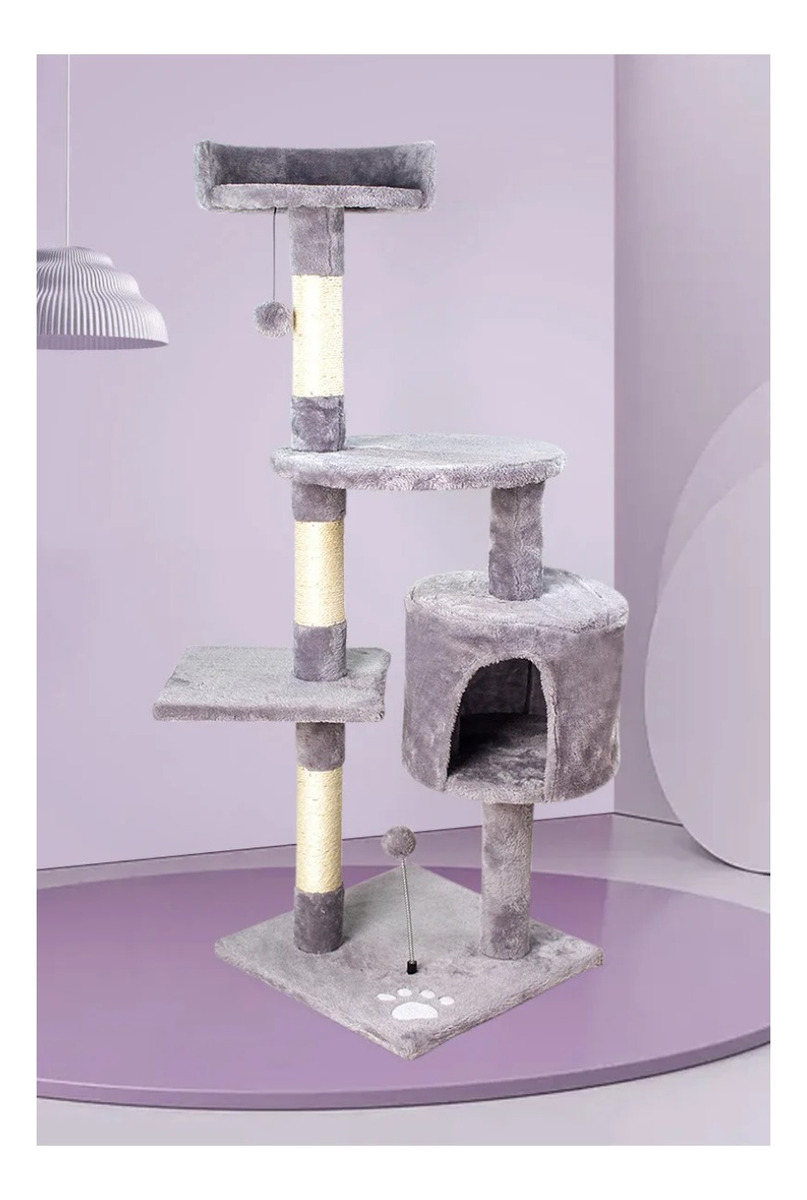 4. Diseño de Pilar audaz, equipado con dos pilares reforzados de diámetro grande de 6,5 CM en la parte inferior para proteger al gato de jugar con seguridad;