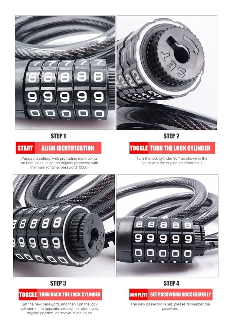 Tranca Candado 5 Combinaciones Antirrobo Bicicletas Motos