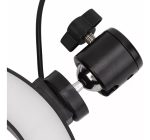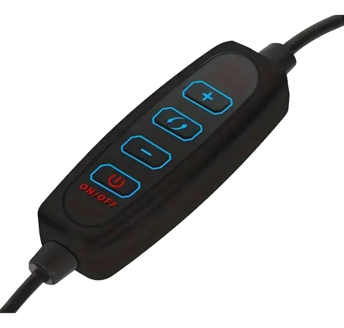 El aro de luz cuenta con un control integrado en el cable que permite encender, apagar y ajustar fácilmente la intensidad o la temperatura de la luz. Puedes elegir entre luz cálida, fría o neutra, según el ambiente que desees crear. Su conexión USB lo hace compatible con power banks, laptops o adaptadores de corriente, ofreciendo una experiencia práctica y portátil.