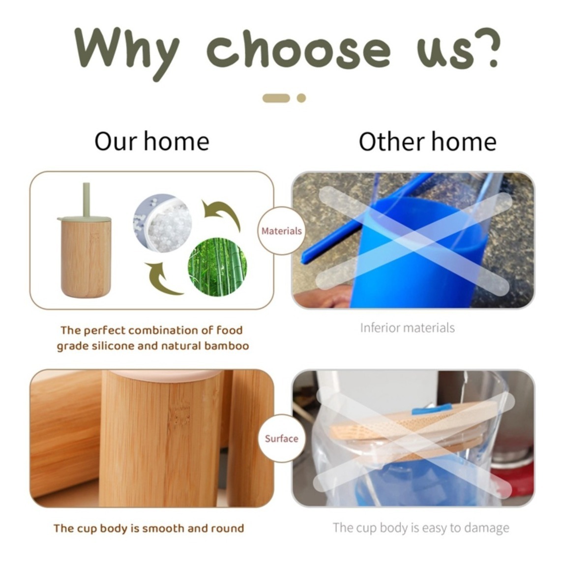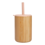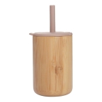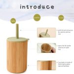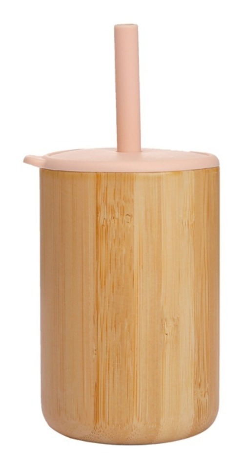 Vasito con sorbito para niños y niñas, fabricado en bambú y silicona de grado alimenticio. Capacidad aproximada 150ml
