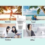 – Taza Plegable: 3 capacidades ajustables (250/350 / 550m), ajuste el vaso plegable para satisfacer las diferentes necesidades. – El rango de temperatura de resistencia es de -40 °F 230 °F.(-40 C / 200C) – Protección más Segura y Firme: el anillo de estabilidad de la copa evita rociar agua; el anillo adiabático evita que el agua caliente lo escalde, puede sostener la taza convenientemente; el fondo engrosado hace que su taza de viaje se mantenga bien. – Diseño Único: El cuerpo del vaso plegable puede ser más pequeño presionándolo ligeramente, ahorrando espacio y fácil de transportar. Fondo engrosado resistente al desgaste y a las caídas. Anillo adiabático antiarrugas. – Silicona de Alta Calidad: respetuosa con el medio ambiente, libre de BPA, no tóxica e inoloro, más segura y saludable, fácil de limpiar. El vaso de silicona plegable con tapa de sellado que no se escapa fácilmente. – Amplia Gama de Usos: Perfecto para viajes a casa, oficina, ejercicio, bebida de día. El gancho en forma de D se puede colgar en una mochila para hacer senderismo, acampar y montar a caballo.
