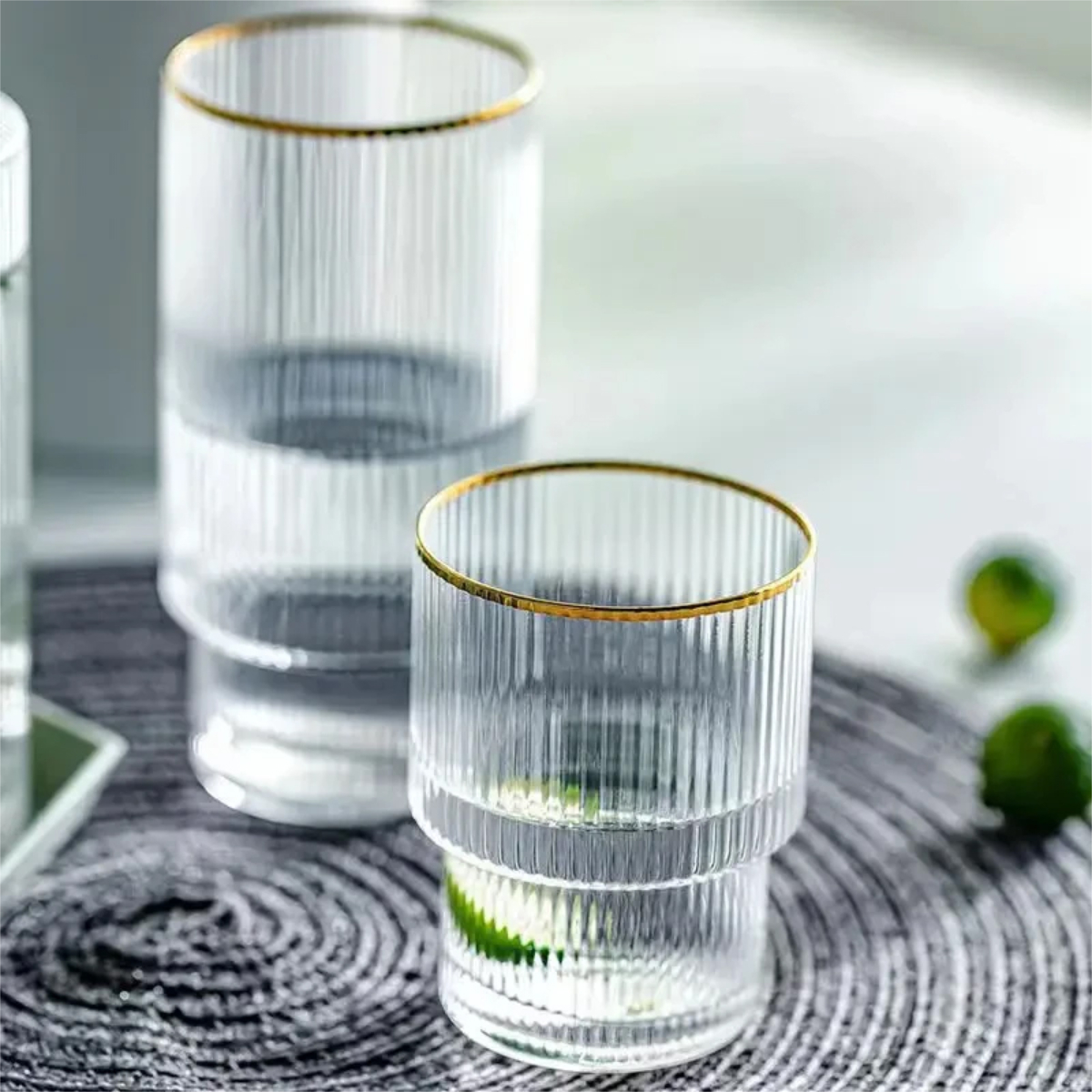 Vaso De Vidrio Nórdico A Rayas Con Detalle Dorado