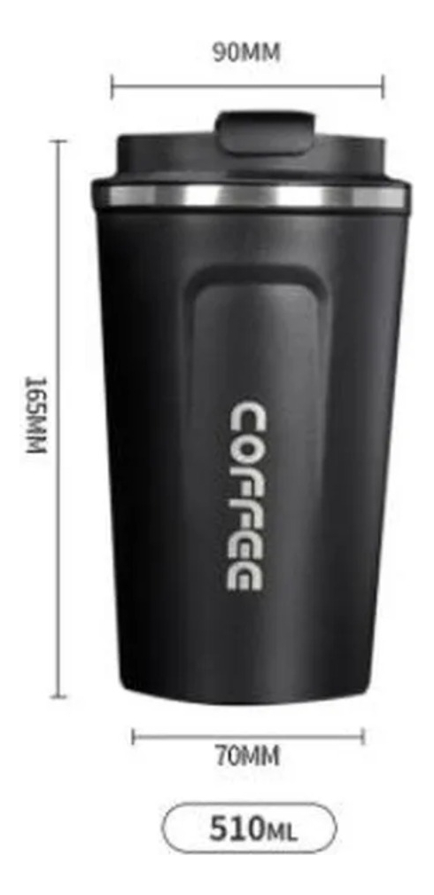 Taza tipo vaso térmico, con tapa hermética para minimizar cualquier pérdida y retener la temperatura de tu bebida el tiempo máximo posible. Ideal para la oficina, caminatas, facultad y mucho más!