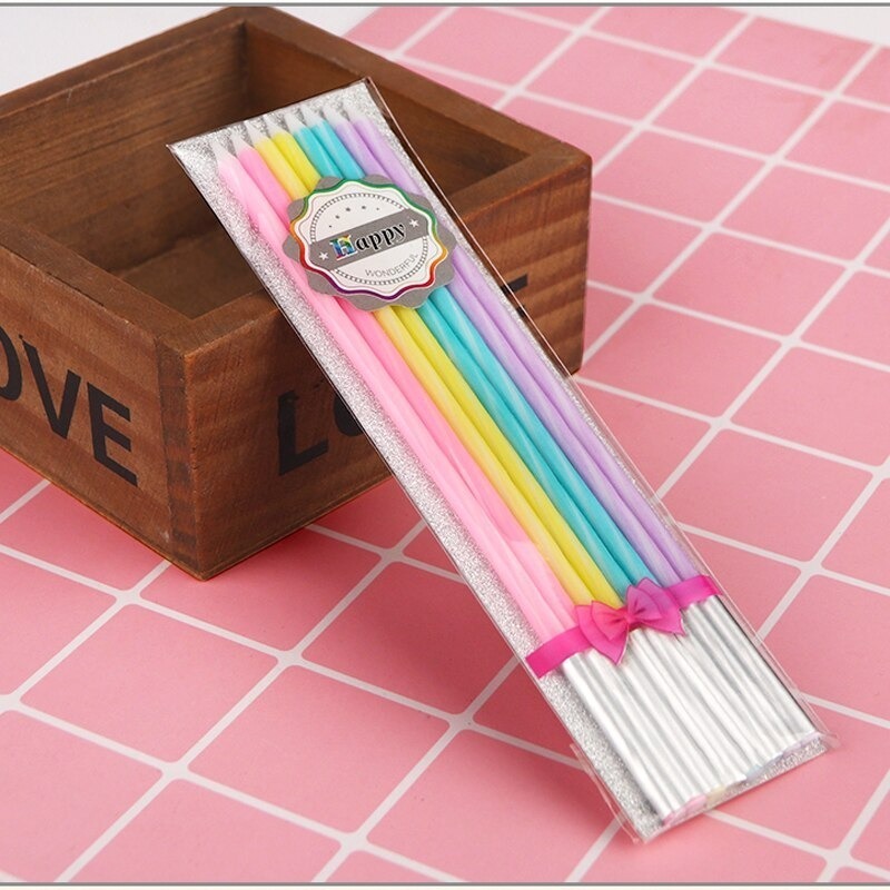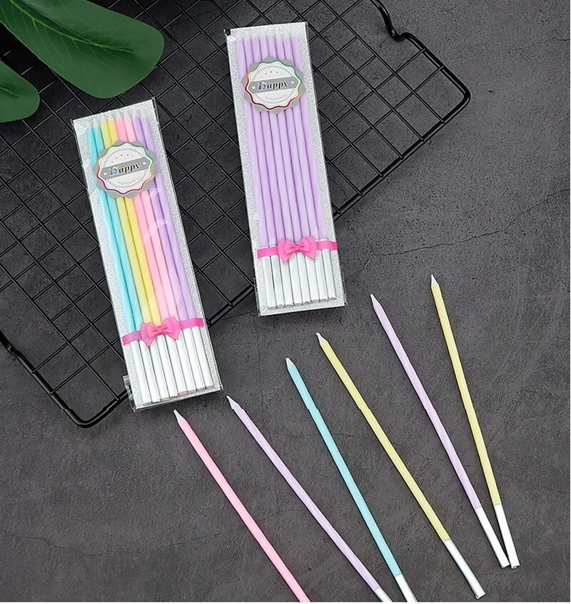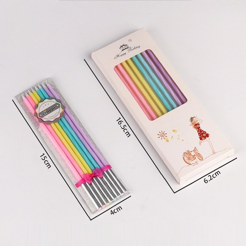 Pack de 8 velas decorativas y coloridas para cumpleaños y fiestas.